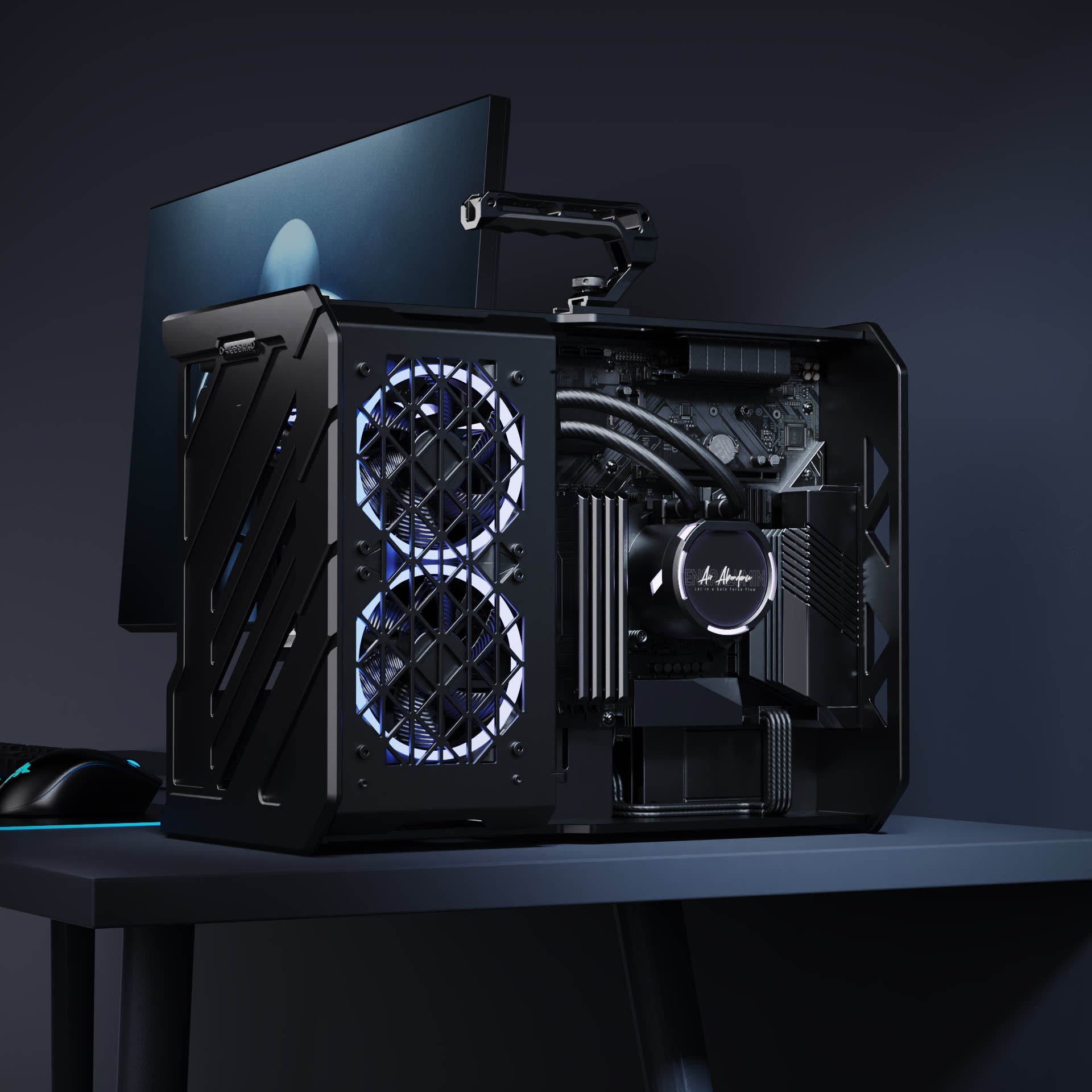 Открытое полностью алюминиевое шасси с ЧПУ, модульное игровое шасси MATX с водяным охлаждением VEDDHA DEFENDER 01