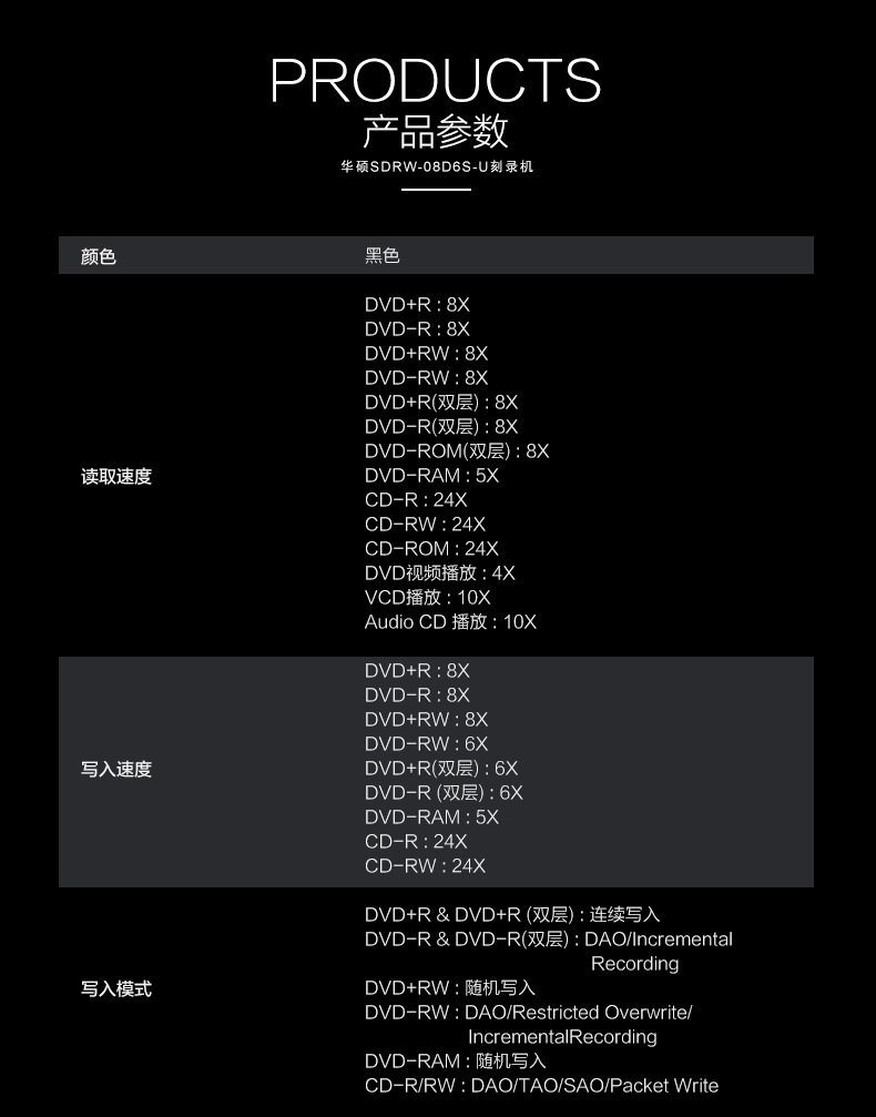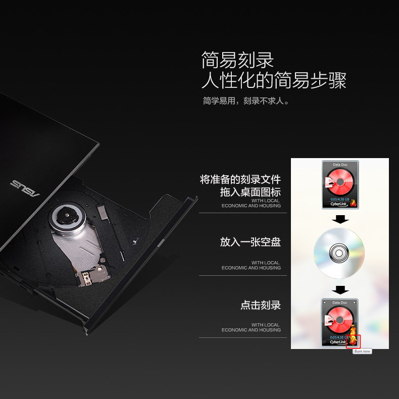 ASUS SDRW08D6SU Ноутбук Внешний оптический привод USB Внешний мобильный мобильный CD/DVD