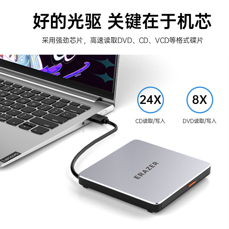 Lenovo Power D100 Мобильный оптический диск Внешний USB -интерфейс.
