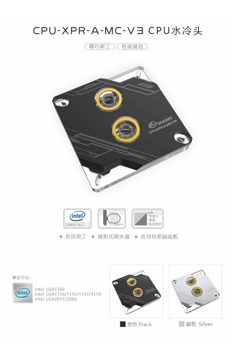 Водяной блок процессора Bykski CPU-XPR-A-MC-V3 поддерживает 1700 115x 2011 1851