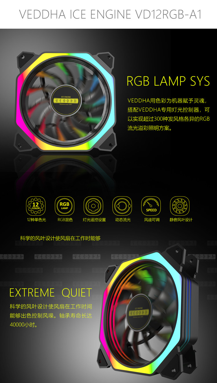 VEDDHA12 -Тип Компьютерный светодиодный ослепительный гало -образный Fantasy Fantasy 12 см. Вентилятор охлаждения лозунга