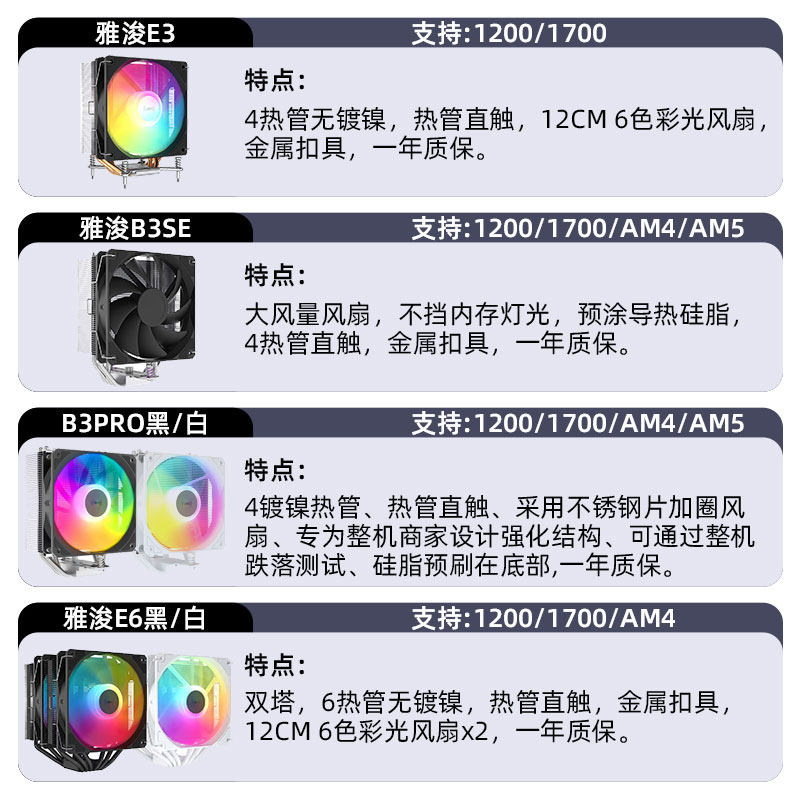 | Цвет: | Вентилятор ARGB Yajun UF123 белого цвета с обратными лопастями, Yajun E3 V3 4 тепловые трубки RGB воздушное охлаждение, Yajun B3Pro 4 с тепловой трубкой ARGB с воздушным охлаждением, черный, Yajun B3Pro 4 тепловые трубки ARGB с воздушным охлаждением белый, Yajun E6 6 тепловых трубок с двойной башней RGB с воздушным охлаждением, черный, Yajun X600 6 тепловых трубок с одной башней и воздушным охлаждением, черный, Yajun X600 PRO с 6 тепловыми трубками, одиночная башня, ARGB, с воздушным охлаждением, черный, Yajun E3A V2 с 4 тепловыми трубками RGB и воздушным охлаждением, черный [только для платформы AMD], Yajun E1Pro с двойной тепловой трубкой RGB и воздушным охлаждением, черный, Yajun E2 4 с тепловой трубкой RGB, с воздушным охлаждением, белый, Yajun E3Pro 4 с тепловой трубкой RGB с воздушным охлаждением, белый, Yajun E3 4 с тепловой трубкой RGB с воздушным охлаждением, белый, Yajun B6 SE 6-трубный Twin Tower/матовый |