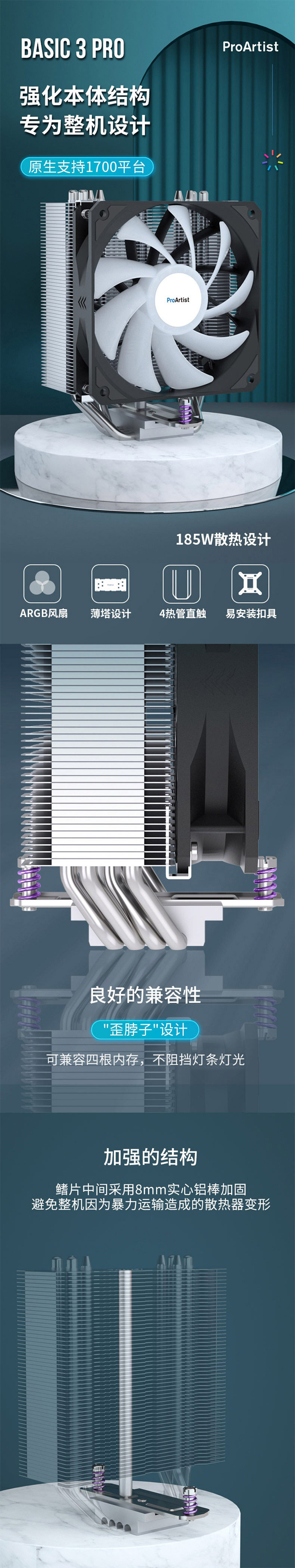 - Yajun B3Pro 4 тепловые трубки ARGB с воздушным охлаждением белый