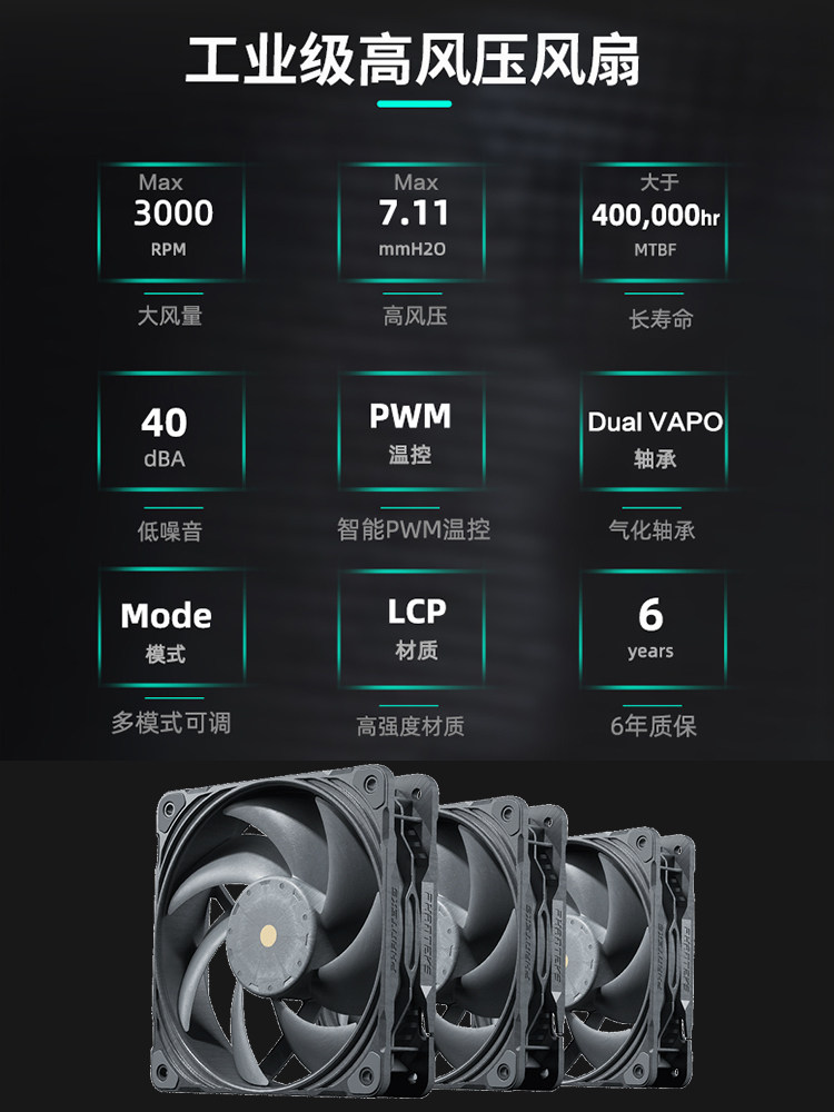 Phanteks Chaser T30 12см PWM Multi -Mode может отрегулировать 30 -миллиметровое давление с высоким содержанием ветра промышленное -громкий охлаждающий вентилятор