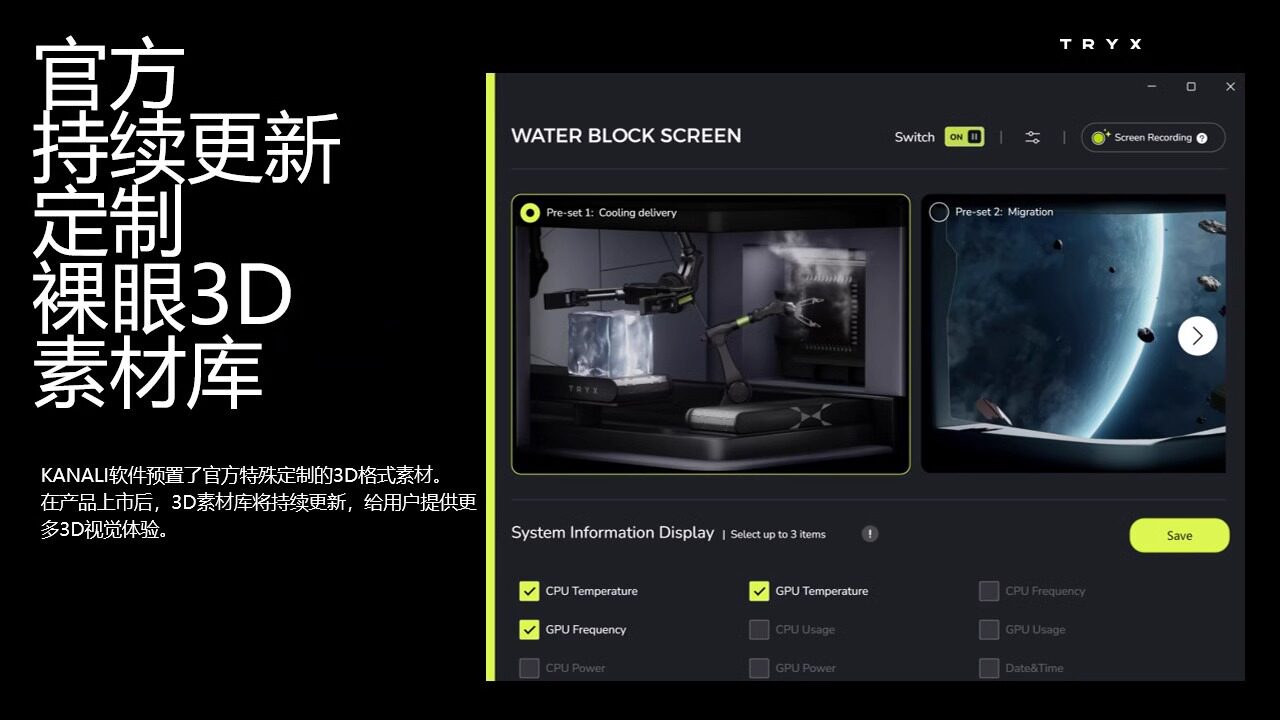 TRYX Криптонианская система выставка домена 360 радиатор водяного охлаждения argb 6,5-дюймовый изогнутый экран обнаженный глаз 3d
