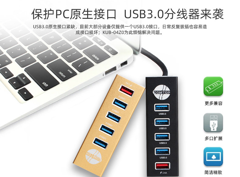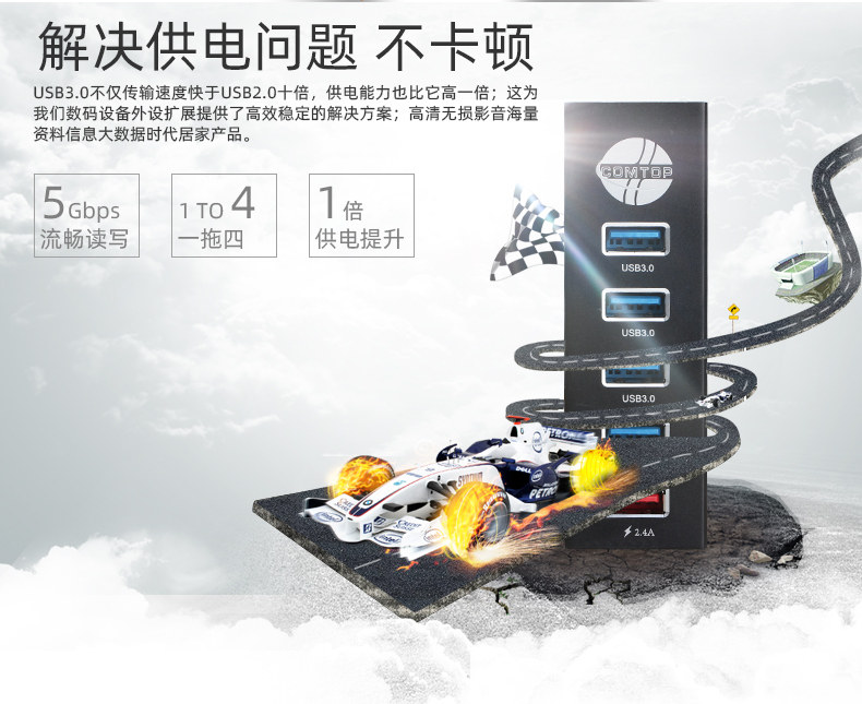 Comtop USB3.0 Измерение задержки четыре много -интерфейса быстрого зарядного концентратора USB Compansion Compantion