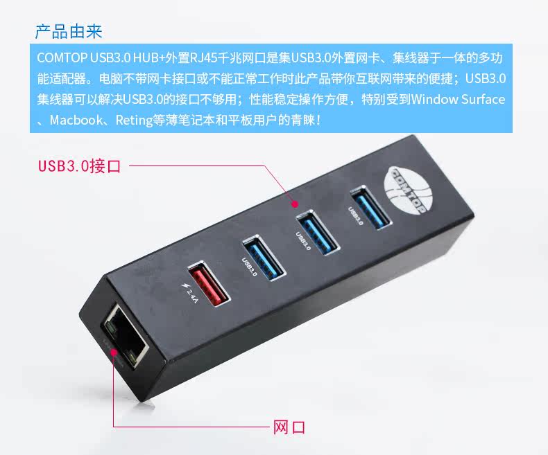 COMTOP USB3.0 SEV Внешний концентратор HUB CARD CARD для сетевого порта Ethernet Converter