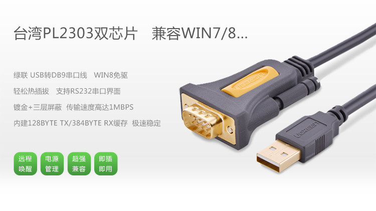 Green Union 20211 USB к ротору Сноил 9 -пин RS232 Соединение DB9 Вращающаяся проводка 1,5 метра 1,5 метра