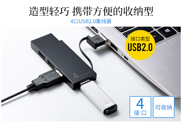 Полупер Hub Hub Japan Sanwa Hub, одно сопротивление, четыре мультиинтерфейса, 4 молотки, небольшой портативный USB -ротор