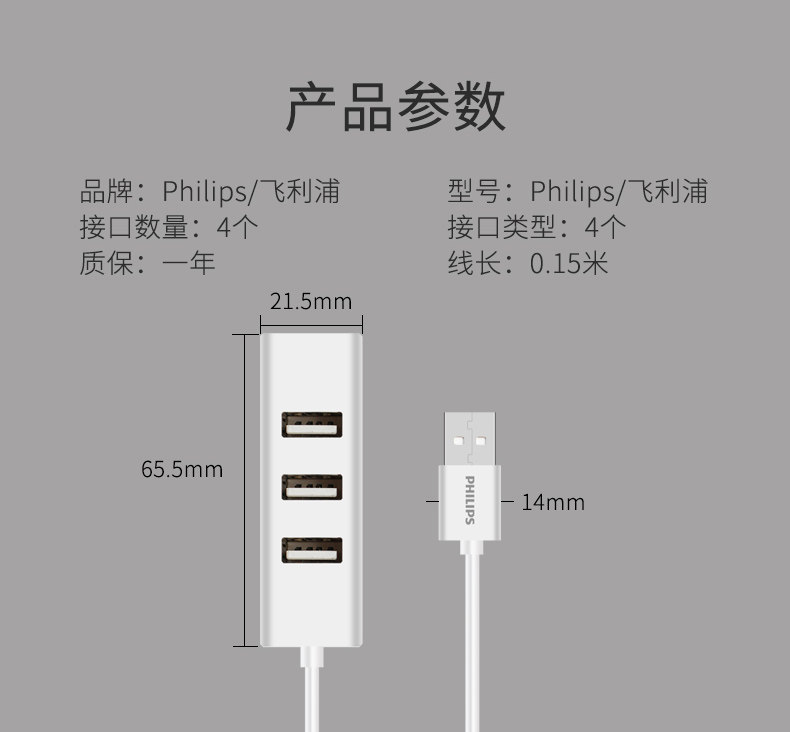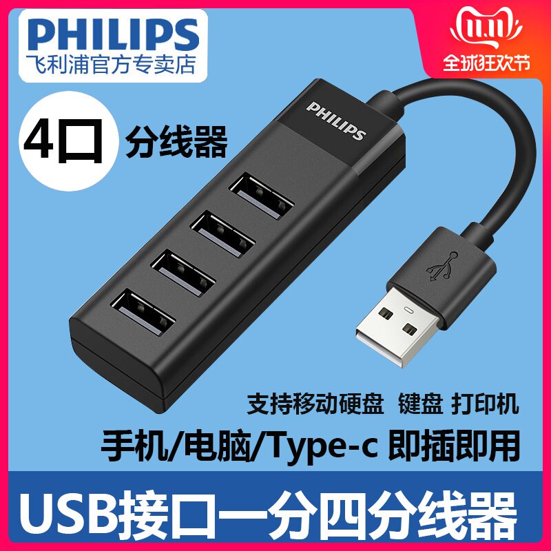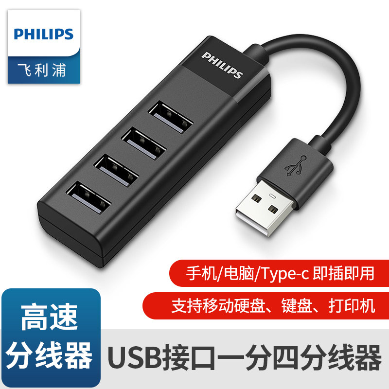 Philips USB Splitter Type-C Мобильный телефон компьютер затягивает четыре USD USP-интерфейс.