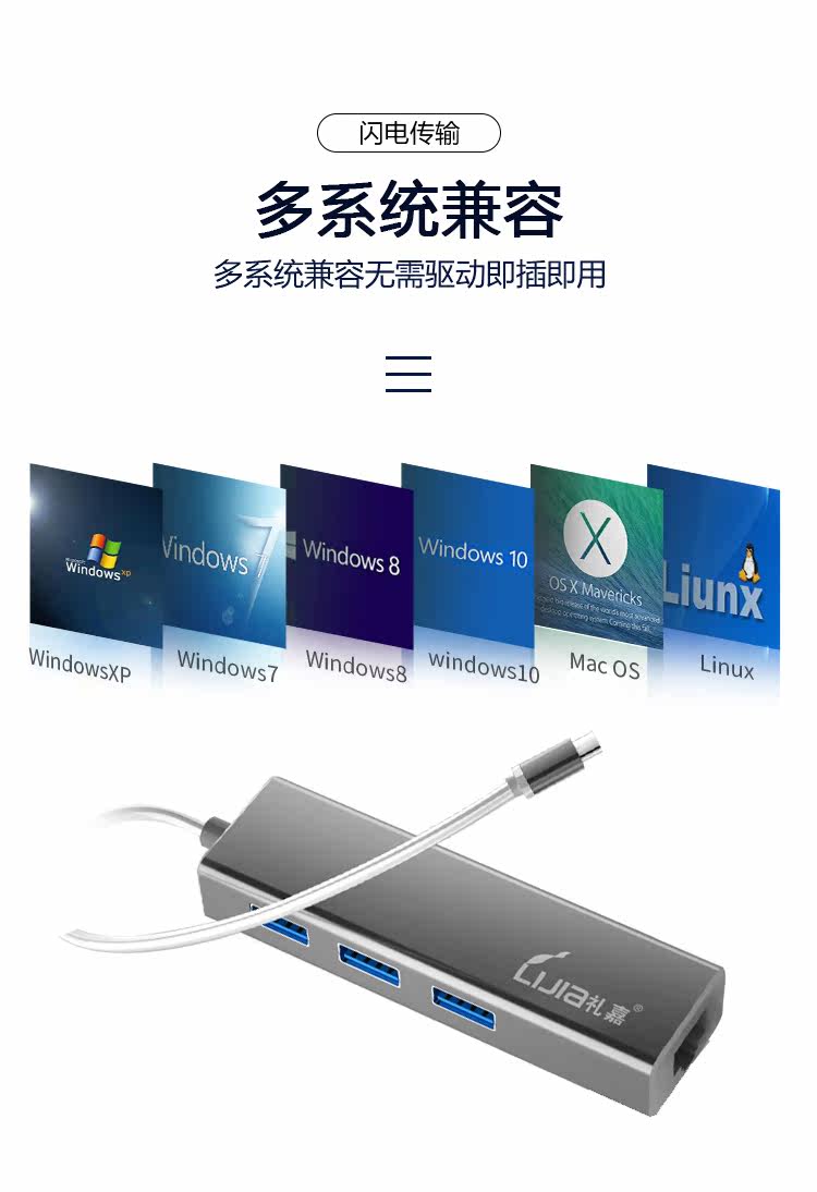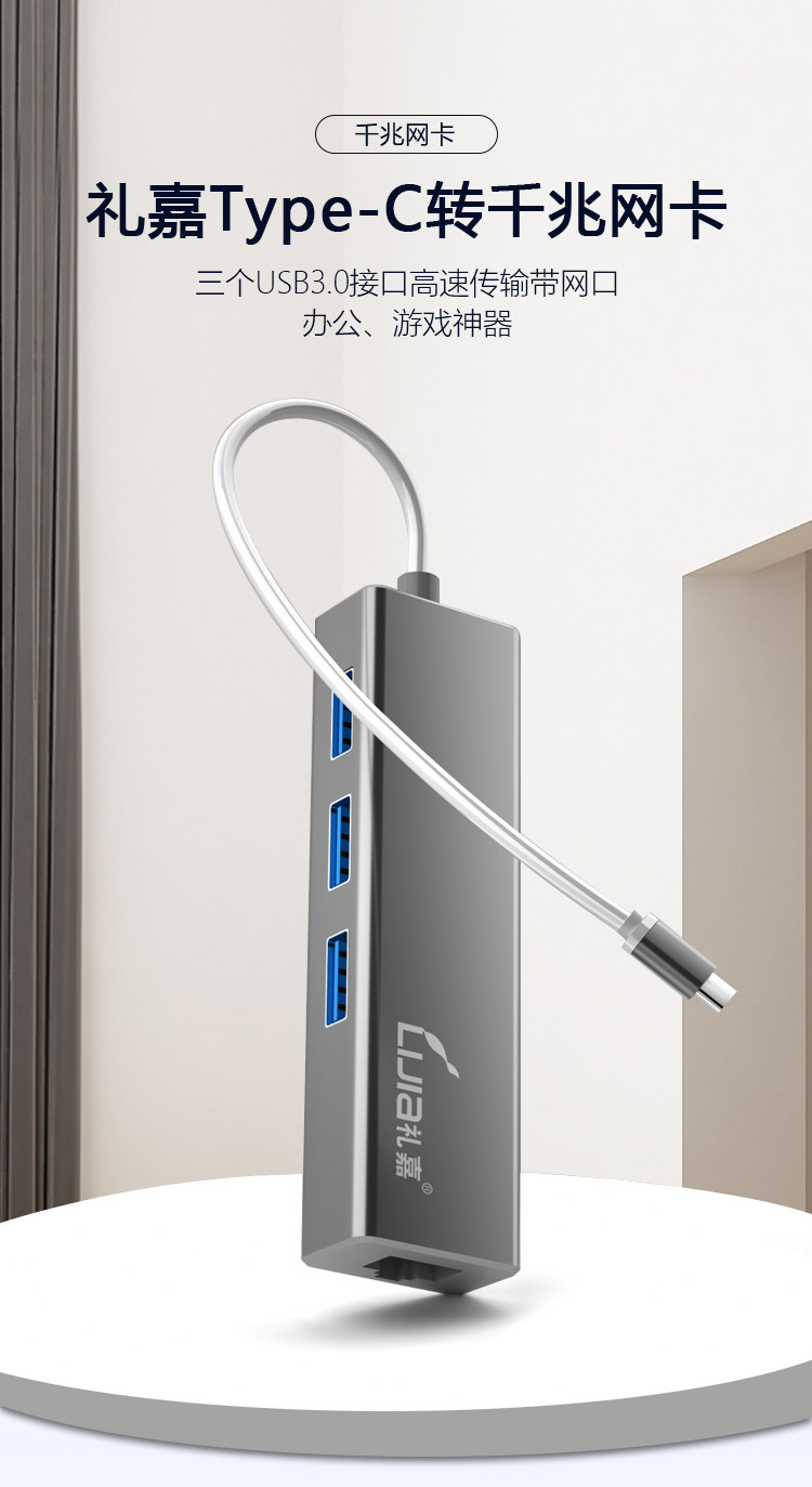Lijia typec в USB DOCK USB-C в RJ45 Gigabit Network Port MacBook Converter USB3.0