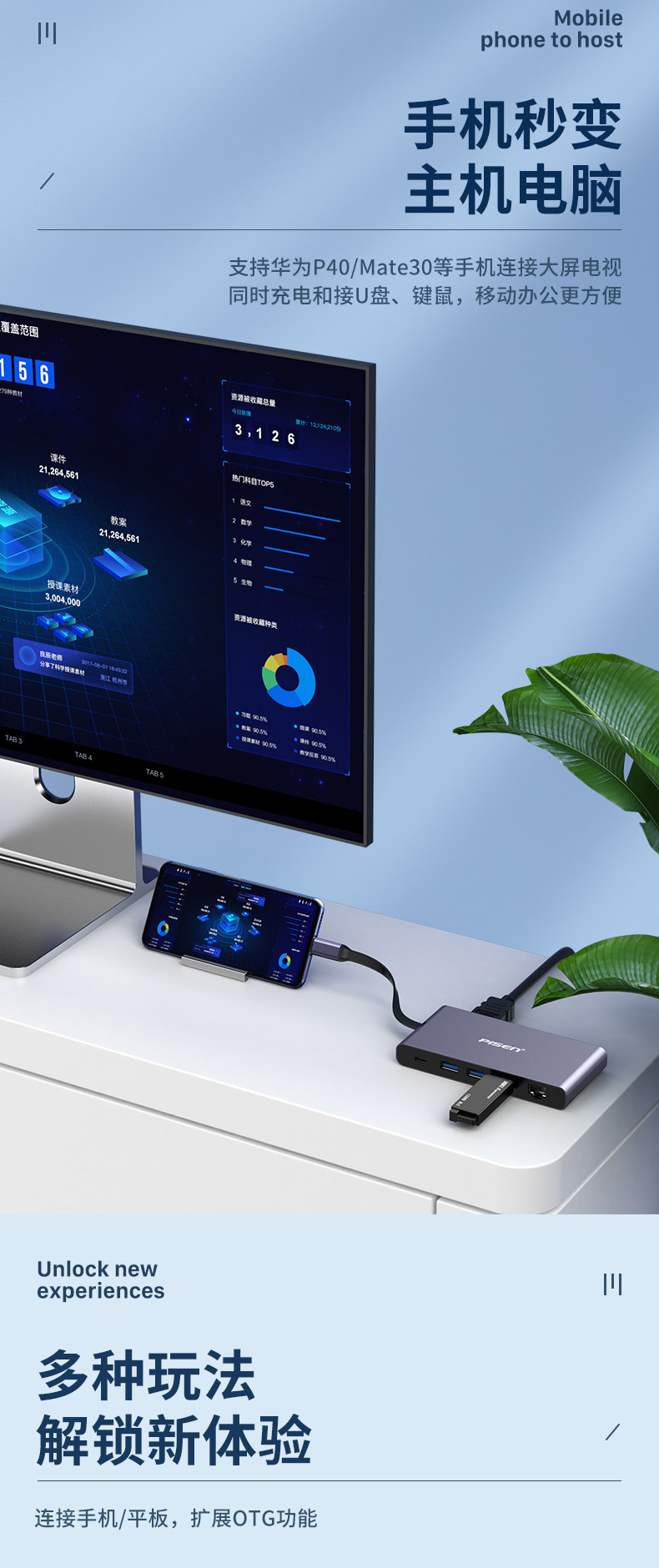 PIN SHENG TIPEC DOCK HDMI Expansion Mobile Phone Computer USB SET Way Hub Jiuhe One PD Fast зарядка подходит для iPad Pro Huawei Mate Apple MacBookPro Rotor Rotor