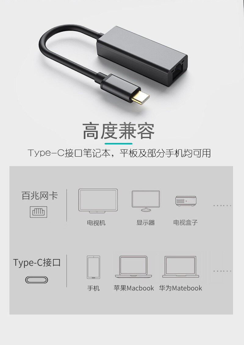 Сетевая карта Type-C до RJ45 100 м приводительная сетевая карта с Light RJ45 Ultra-Tin