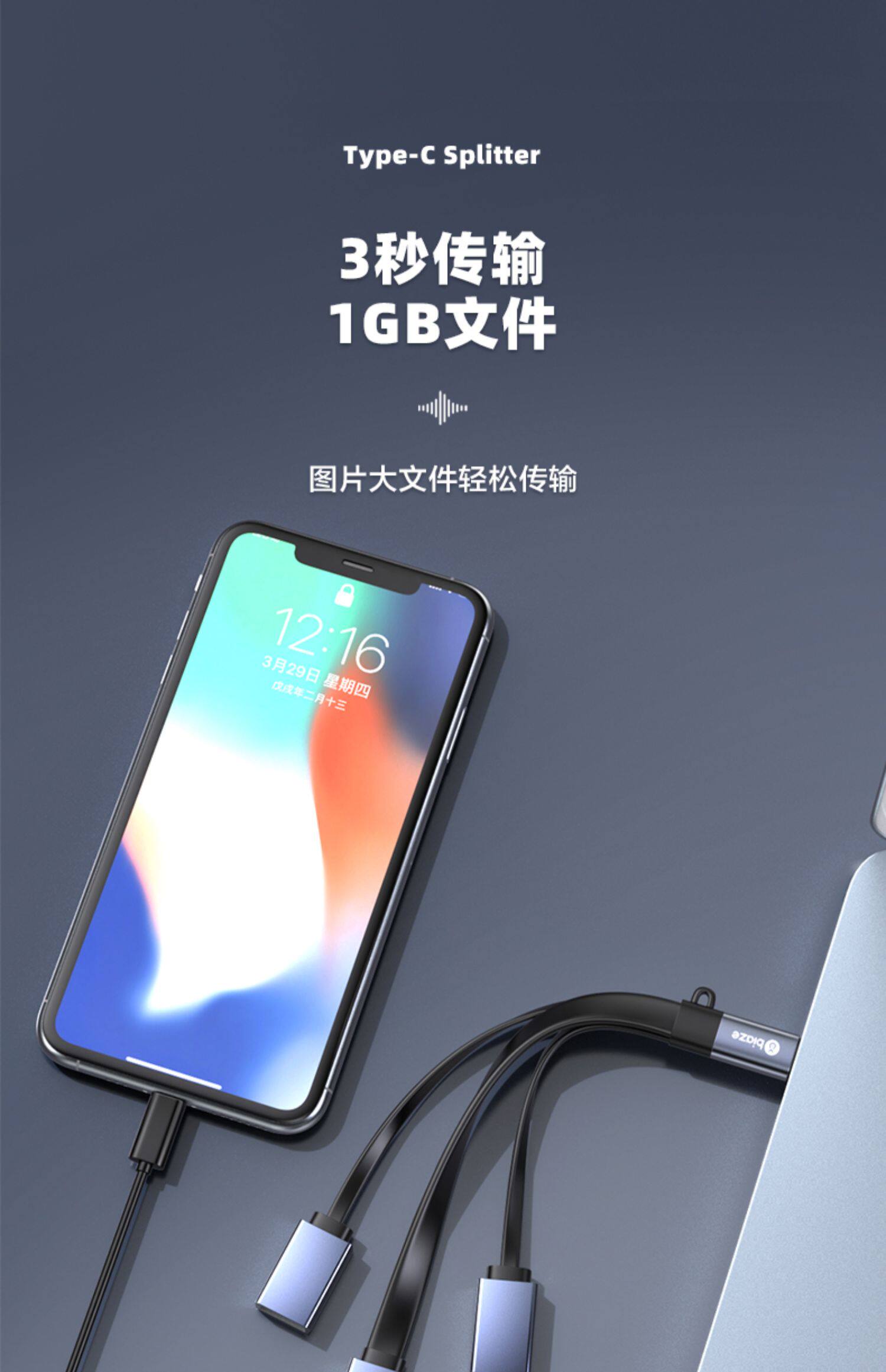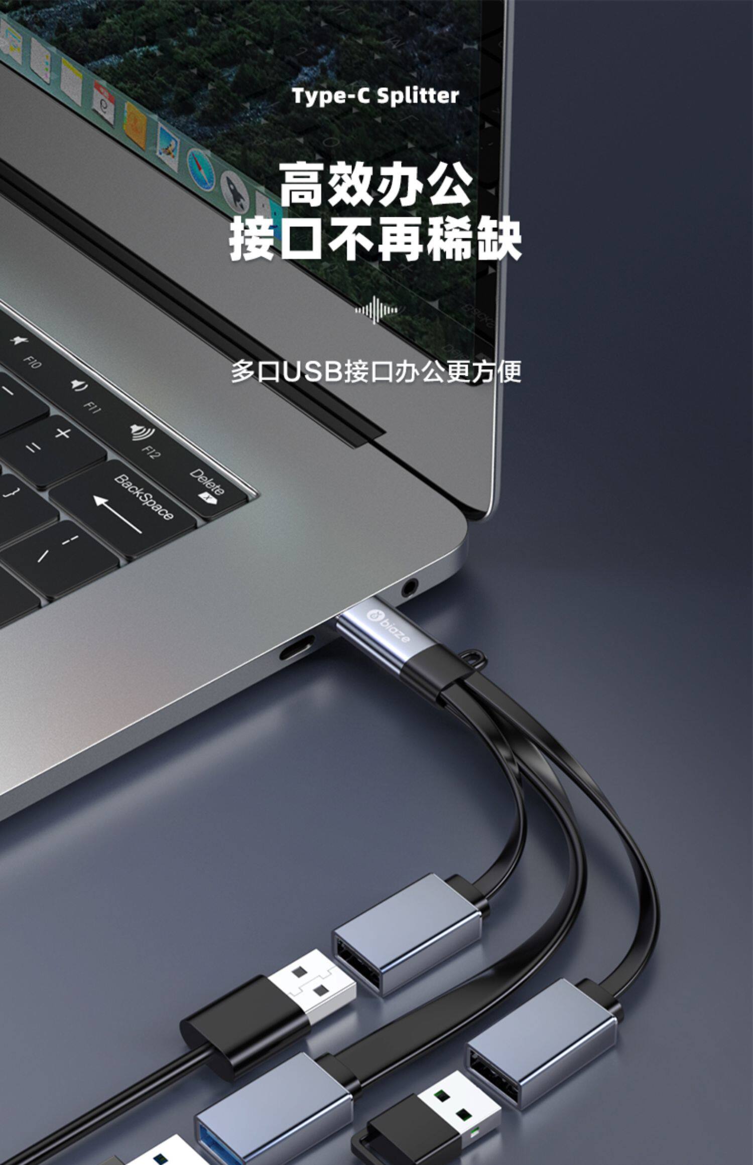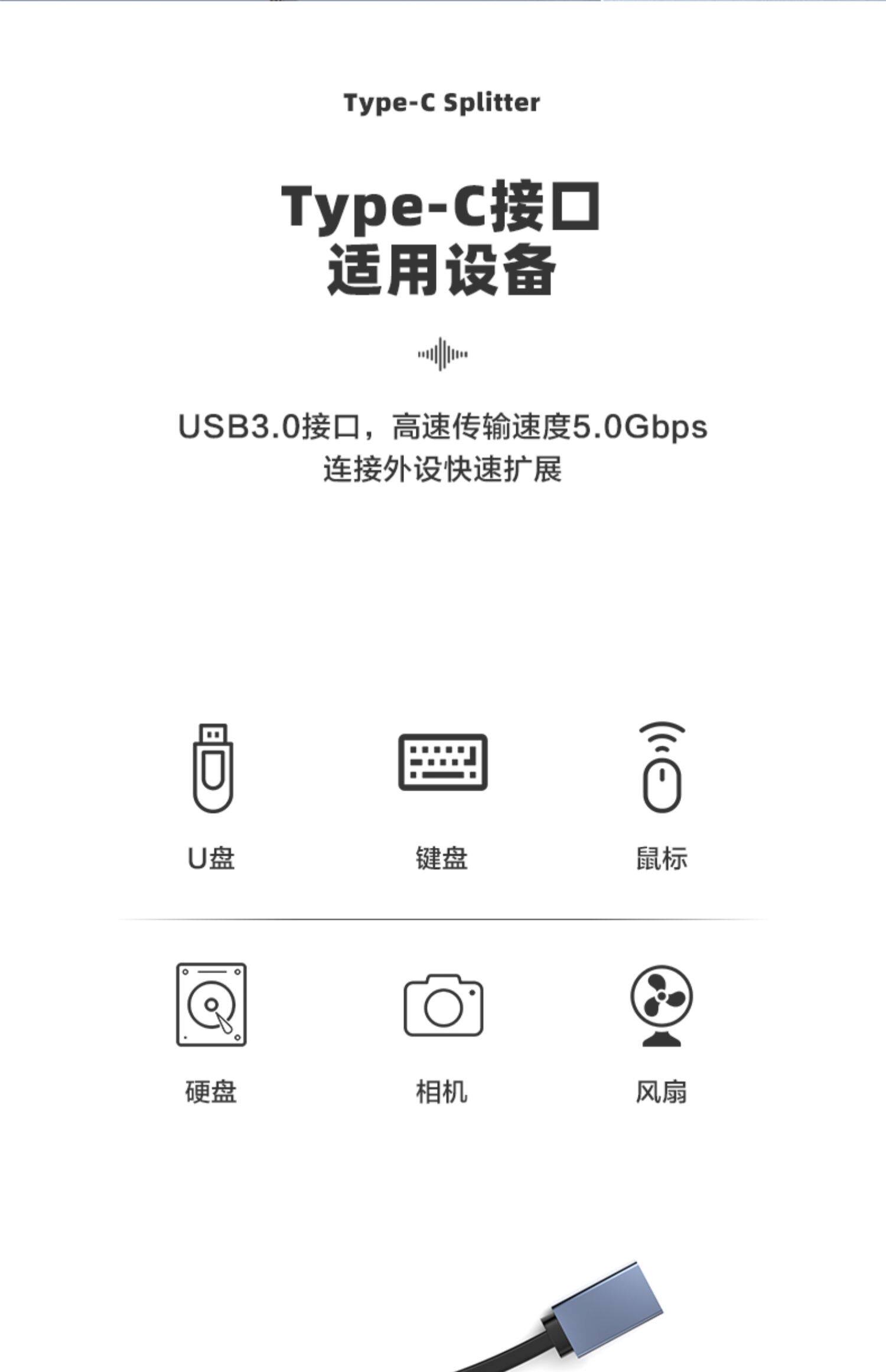 Typec Extension Dock Transfers USB3.0 Extensor Одноточечный трехтоинтер подходит для Type-C Громовой электрический порт.
