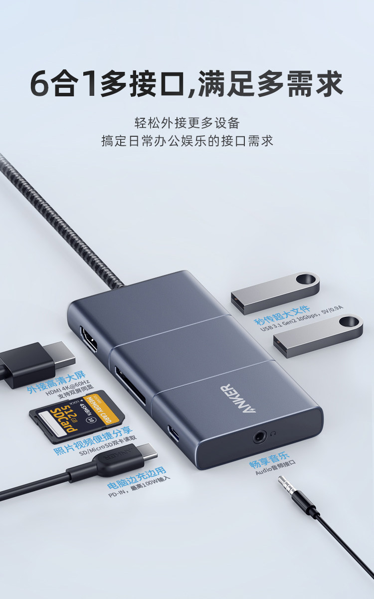 Anker ANK USB-C Landwing Hub Notebook Transfer PD Fast зарядка 6-в-1 MacBook MacBook
