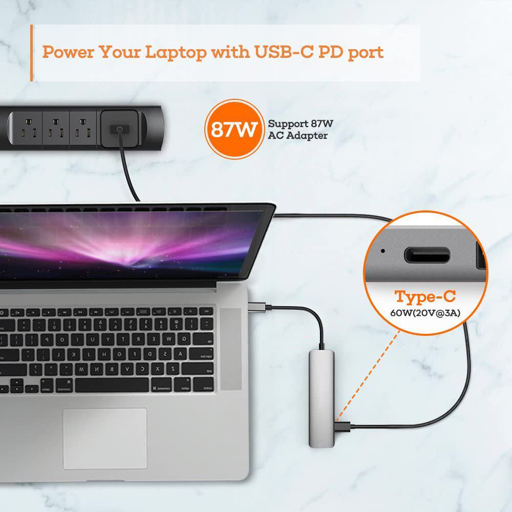 4khdmi Multi -End Oral Card Reader 6 -in -1USBC Hub Adapter USB3.0SDTFPD