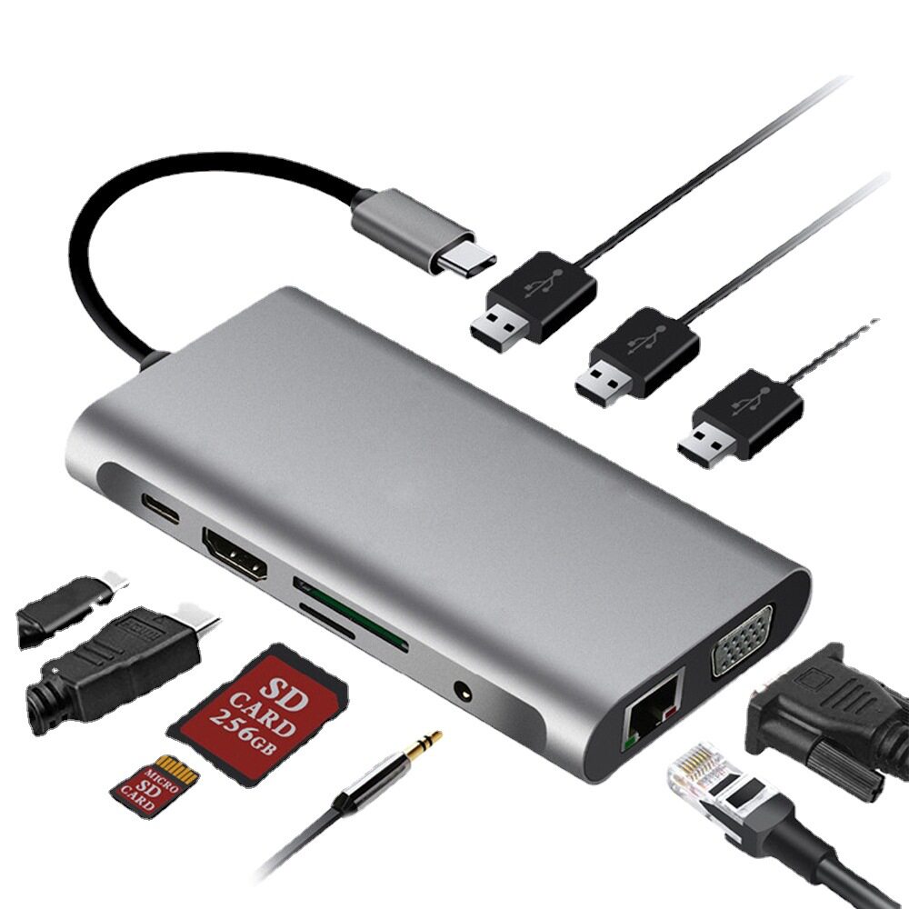 Typec Multi -Mouth до 4Khdmi Gigabit R45100WPD Зарядка USB30 Ten -In -One Multi -Function расширение