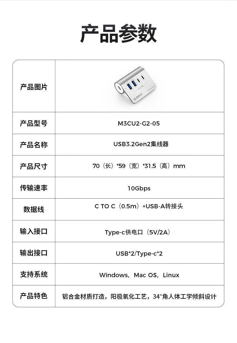 Orico/Orre USB3.2 Разделитель подходит для MacBook Notebook Desktop Computer Multi -Interface расширение
