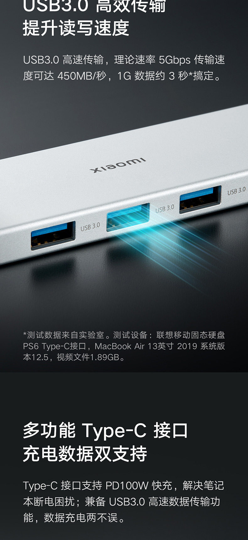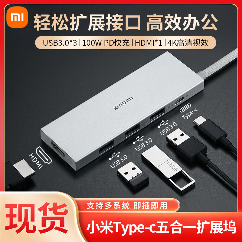 Xiaomi Расширение док-док-тип типа C пять в одном в одном расширении высокой трансмиссии высокой трансмиссии USB3.0 Rotor HDMI Multi-Interface Converter Data Laptop 67W настольная настольная зарядка.