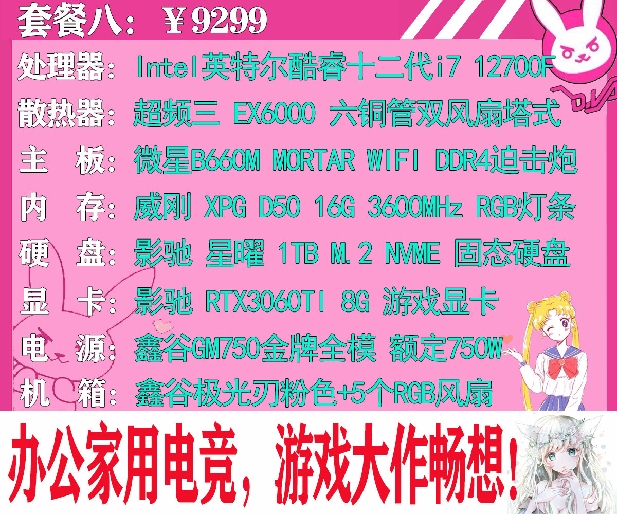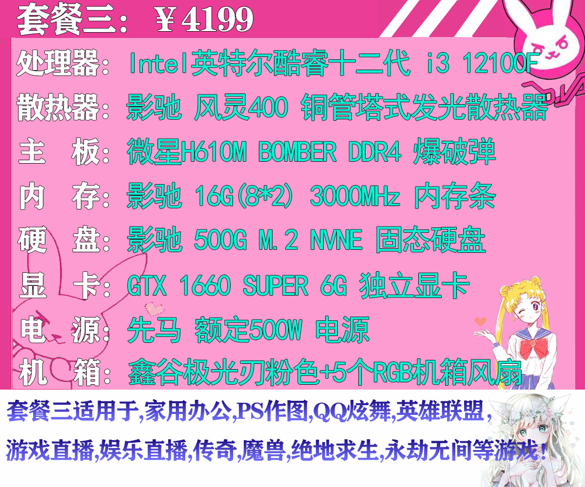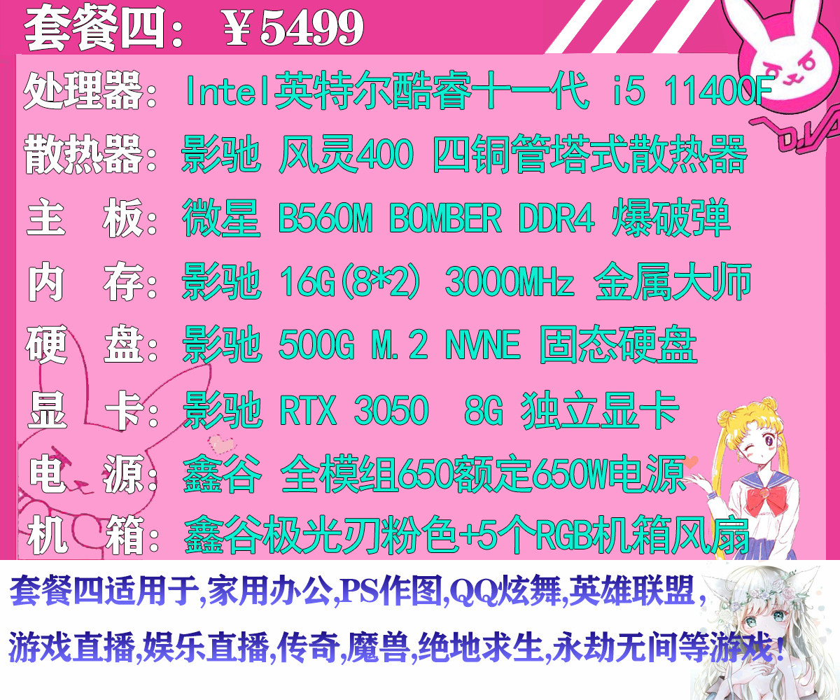 Girl Pink Computer Host Amd Intel Detmy Generation i5 i7 i7 eat Chicken Game Desktop Assembly Computer