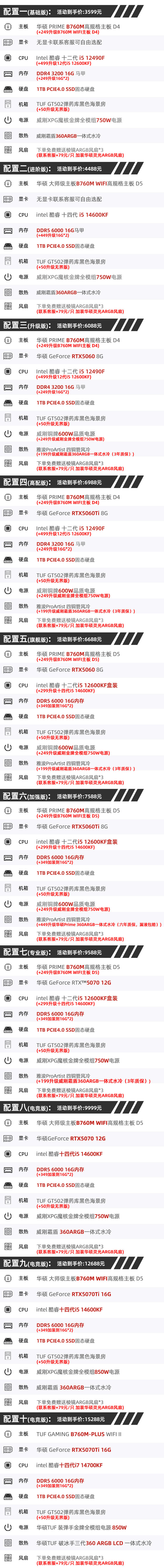[12 вопросов, беспроцентные] ASUS TUF склад боеприпасов хост DIY сборочная машина 13490F/12600KF/RTX5060Ti/5060/5070Ti видеокарта комната с видом на море Delta настольный компьютер