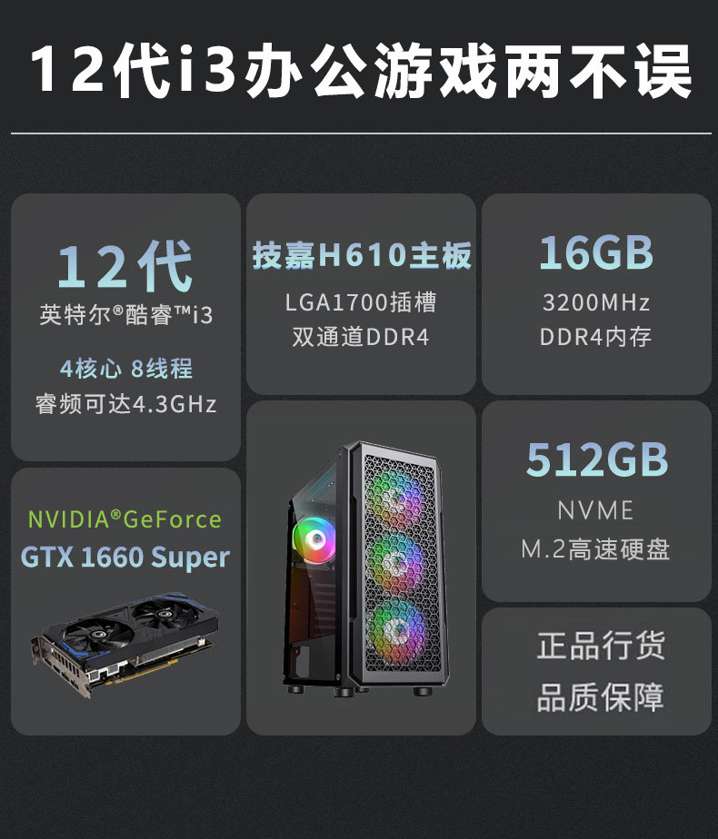 Intel 12th -Generation i3 -тип компьютерный компьютерный домашний офис eat Chicken Diy Assembly 1660s Whate Machine 12100f