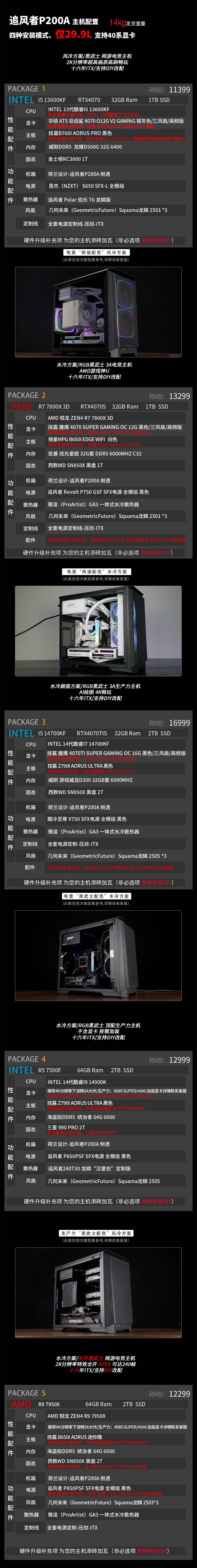| Емкость жесткого диска: | Configure 1 13600KF/RTX4070/32G 6400/1T, Настройте два 7800X 3D/RTX4070S/32G 6000/1T, Настройте три 14700K/RTX4070TIS/32G 6000/2T, Настройка 4 14900K/64G 6000/2T, Конфигурация 5 7950/64G 6000/2T |