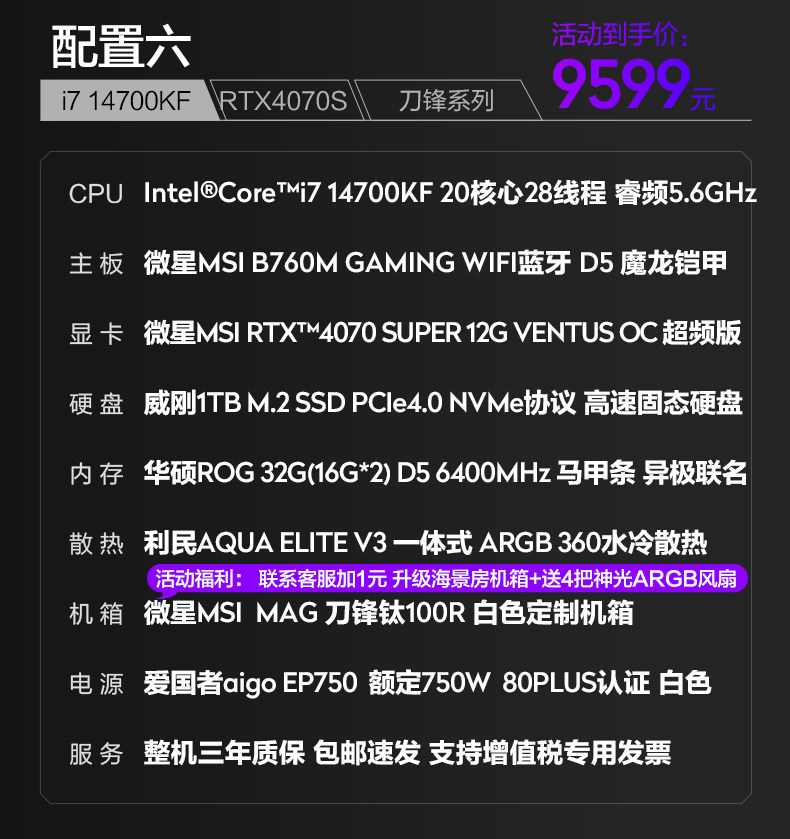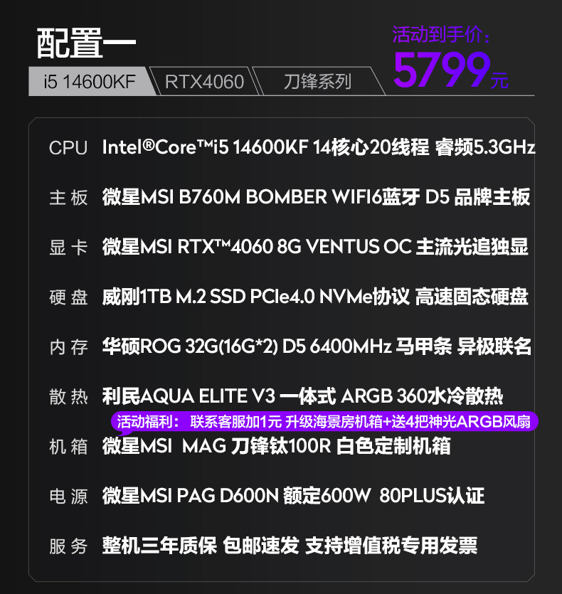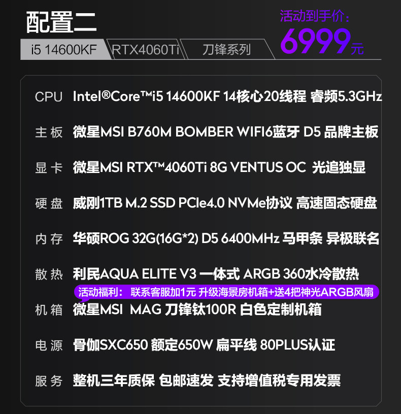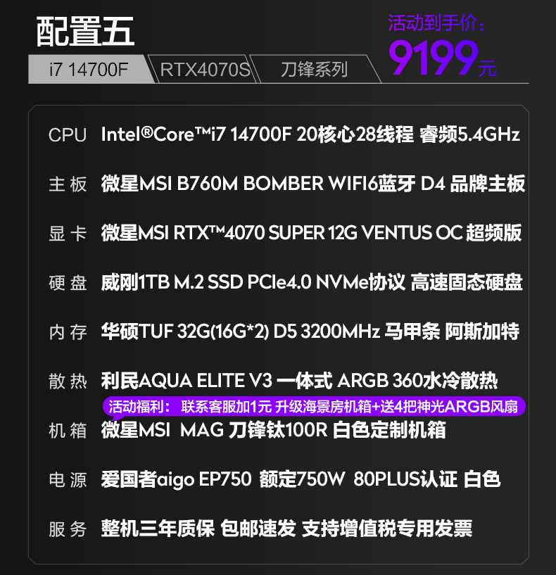 MSI Blade Family Bucket I7 14700KF/4060TI/4070S Сборка компьютера Хост DIY Desktop E-Sports Game Black Myth Wukong Design AI рендеринг и покраска высокооборудованного полного набора
