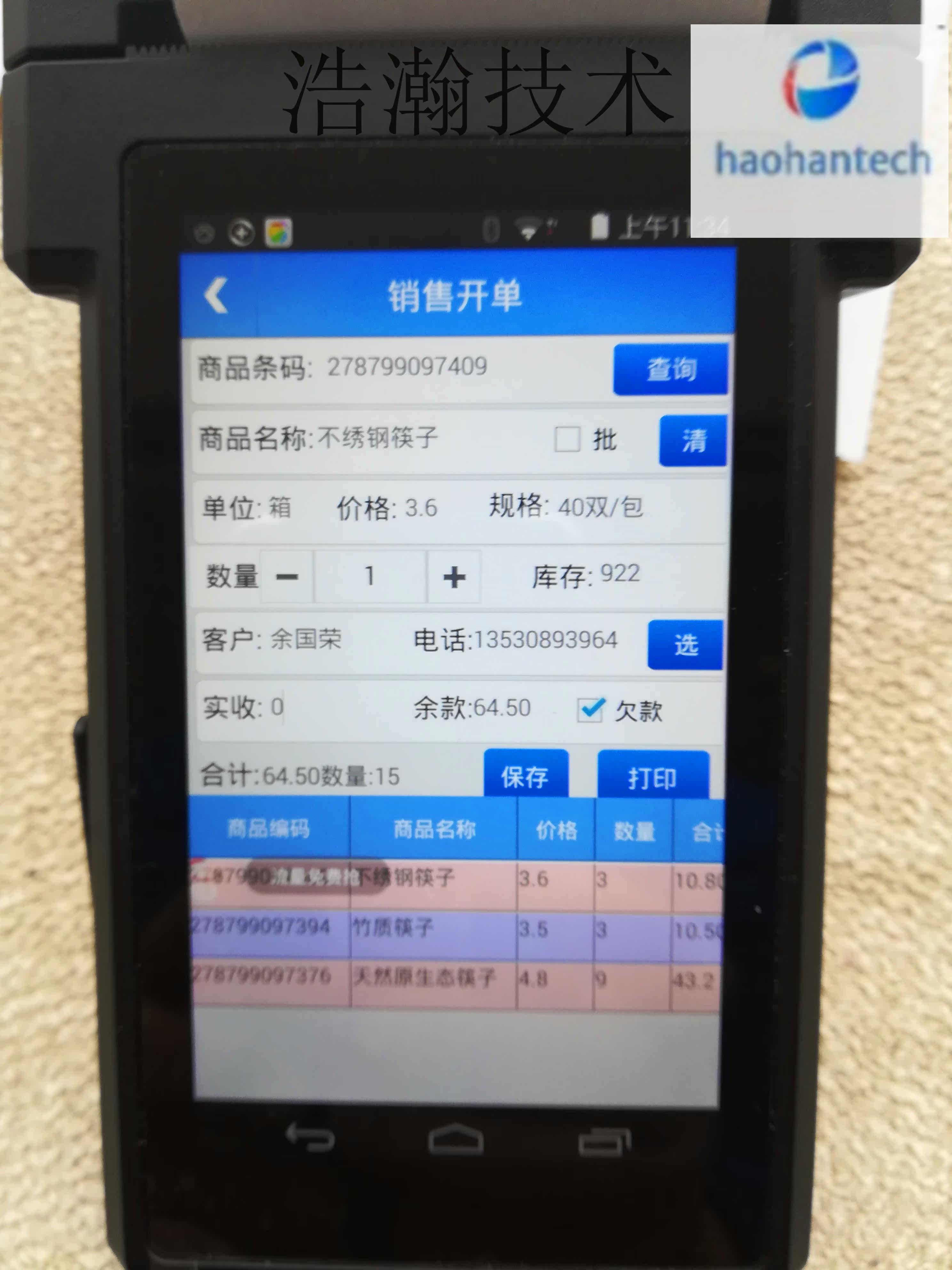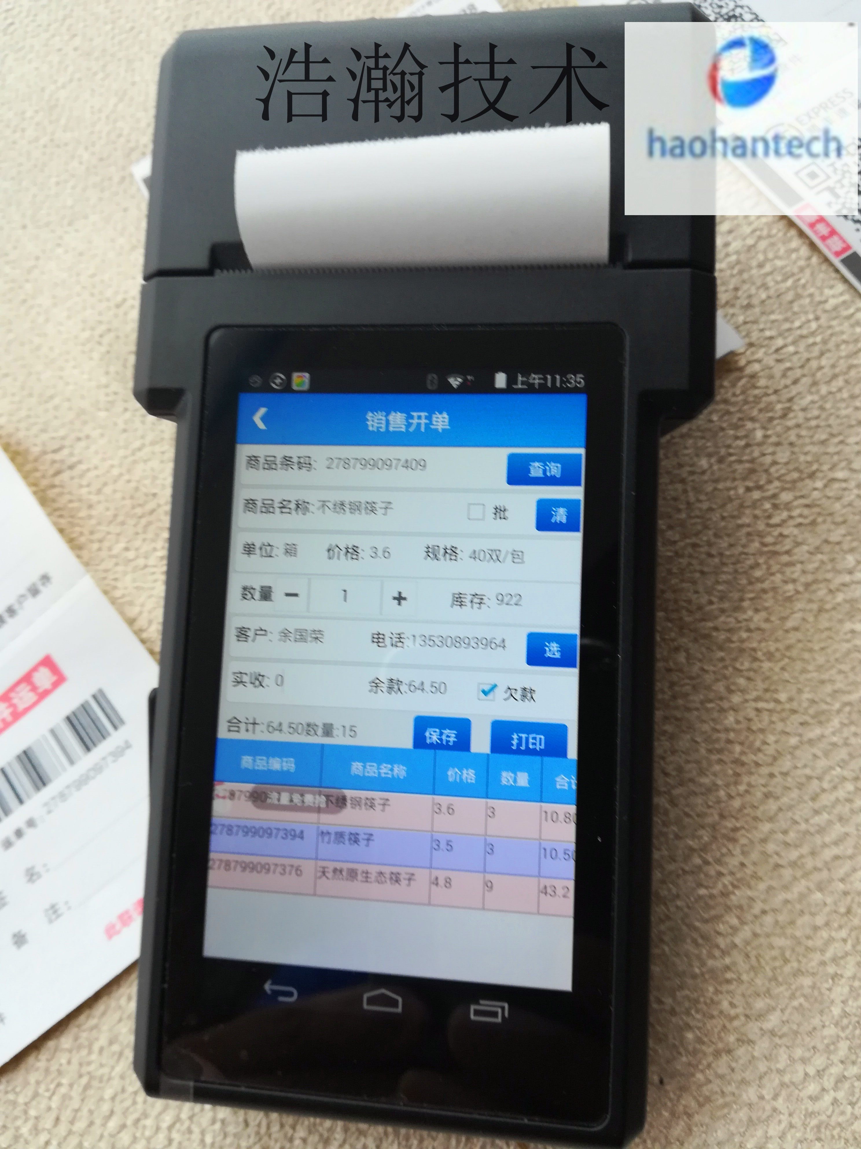 58 -миллиметровый пальмовый ресторан для одиночной одежды Android Portable Thermist Advicidal Tag Bill PDA Руночная терминал интегрированный принцип
