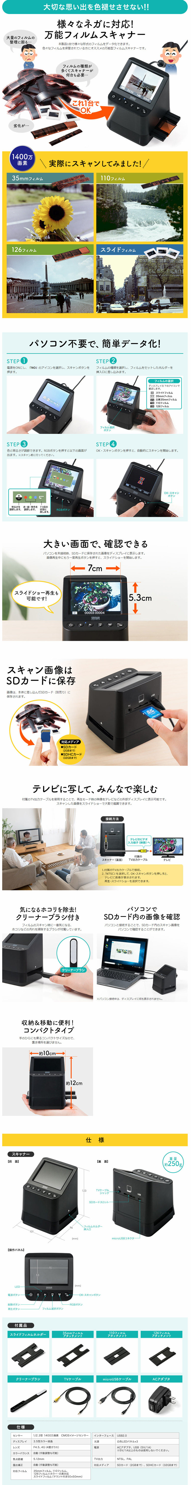 ● 35 мм 11 ル м, 110 フィ ル ム, 126 フィ ル ム, ス イ ド フィ ル ム し し て い い い い