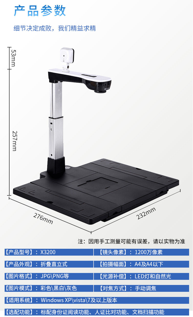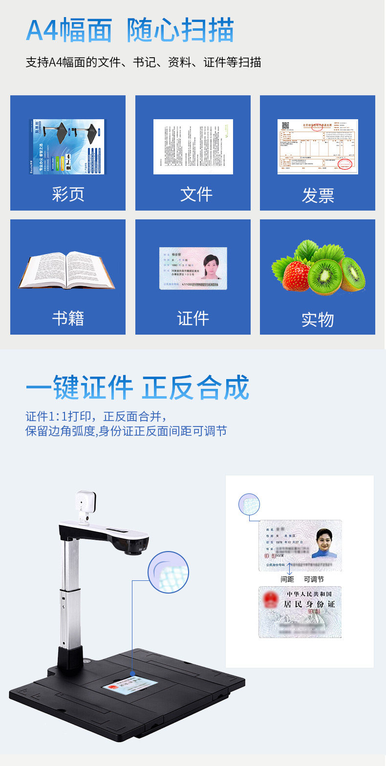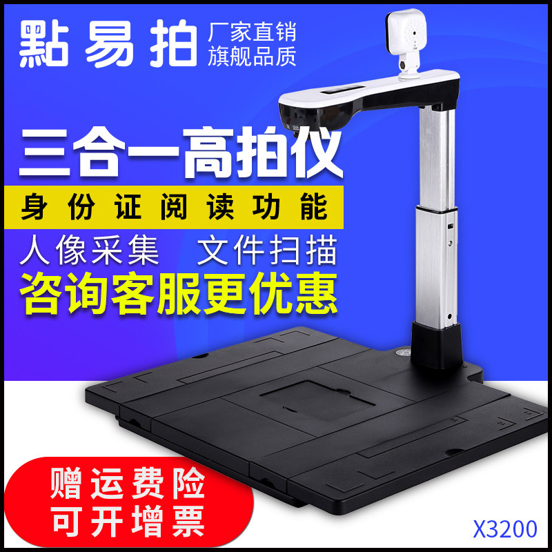 点易拍 X3200 Triple One -High Shot Instrument 12 -Megapixel High -Definition Dual Lins A4 сканер документов HD идентификационные карты Сканирование документов.