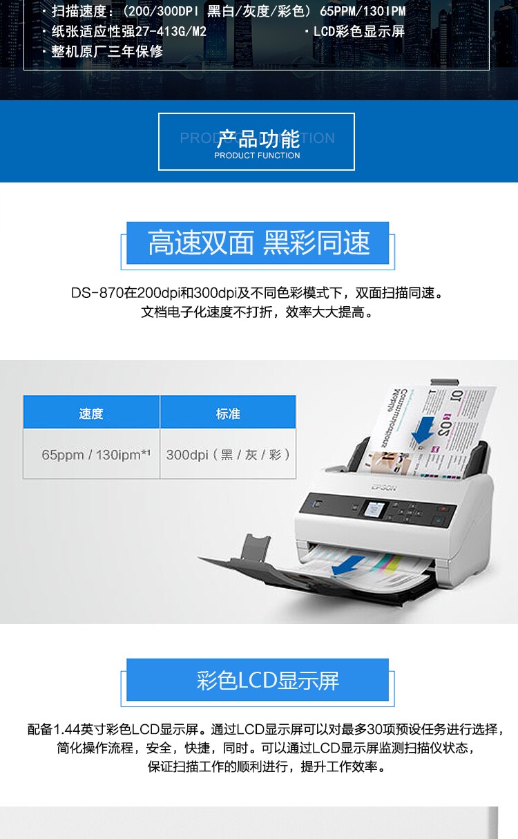 Epson DS-870 Автоматическая непрерывная бумага в бумаге A4 Высокоскоростной высокоскоростной сканер с высокой дефицитом.