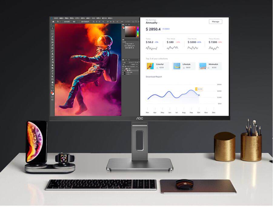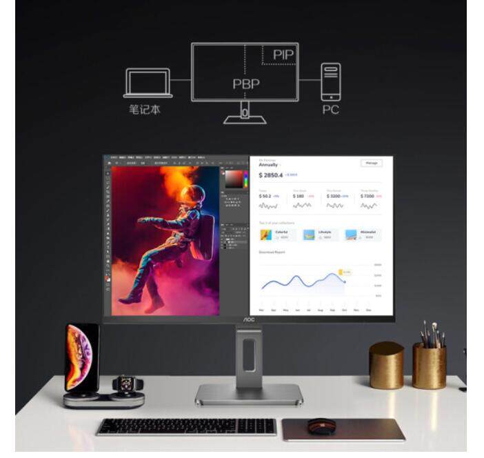 Официальная конфигурация вторая: компьютерный монитор AOC, 31,5-дюймовый, 4K, тип-c, 65 Вт, обратная зарядка, узкая рамка, низкий уровень синего света и экран без мерцания, профессионально разработанный поворотный подъемный кронштейн для офиса U32P2C