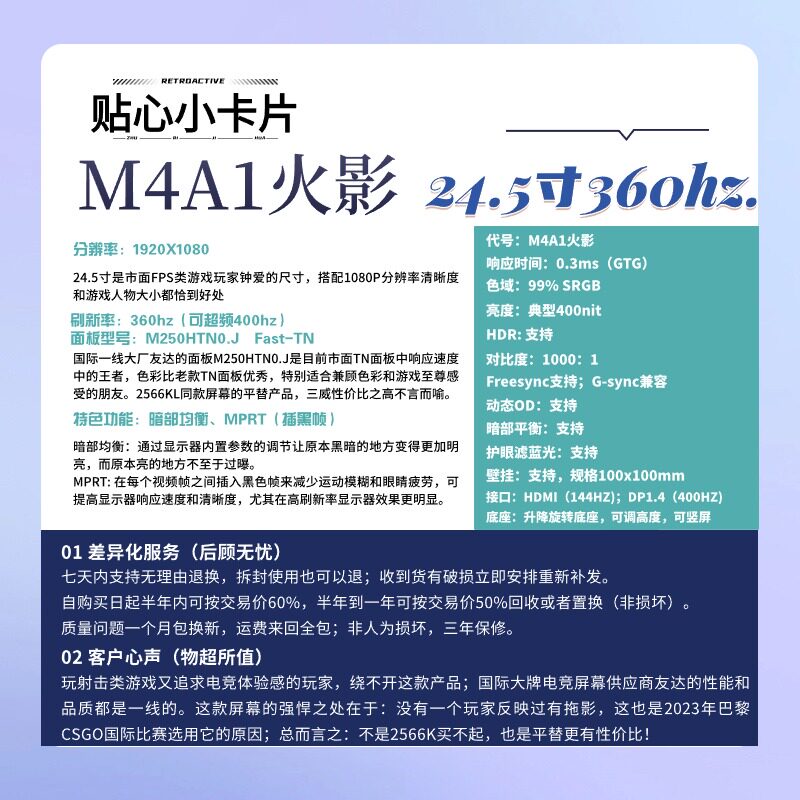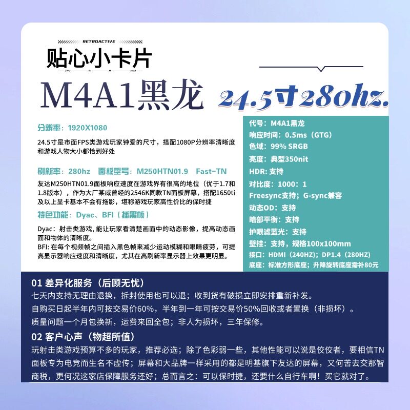 | Цвет: | Разрушение M4A1 24,5 дюйма/280 Гц/панель с быстрыми видами/0,5 мс., M4A1 Black Dragon 24,5-дюймовый/280 Гц/Fast-TN1.9 Панель/0,5 мс Время отклика/Dyac Black Technology/Table Wei 2546K та же панель, M4A1 Naruto 24,5 дюйма/нативные 360 Гц разгона 400 Гц/панель Fast-TN/0,3 мс Время отклика/Балансировка темных деталей/таблица WEI 2566K та же модель TN1.J панель, M4A1 Black God 24,5-дюймовый/500 Гц/панель Fast-Ips/0,2 мс Время отклика/инопланетянин AW2524 Тот же экраны LG, M4A1 Gun King 24,5 дюйма/родной 540 Гц/панель Fast-TN /0,1-0,2 мс Время отклика/балансировка темных деталей Dyac/Table Wei 2586K та же модель TN Панель |