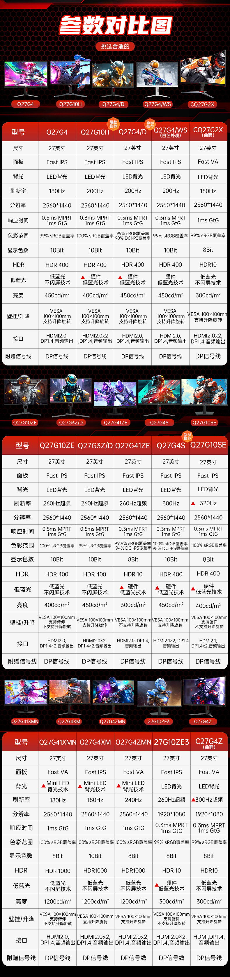 | Цвет: | Новый продукт [27 -дюймовый IPS/2K/Native 200 Гц/10 бит/оборудование с низким синим светом/подъемом и вращением] Q27G10H, 27 дюймов [быстрый IPS/2K/собственное разрешение 180 Гц/10 бит/подъем и поворот] Q27G4, 27 "Белый [быстрый экран IPS/2K/Native 200 Гц/10 бит/оборудование с низким синим светом/подъемом и вращением] Q27G4/WS, 27 "Кричная поверхность [HVA -экран/2K/Нативная кривиза 180 Гц/1500R/уменьшение] CQ27G2X, 27 дюймов [быстрый IPS/2K/260 Гц, отклик 0,5 мс/10 бит] Q27G10ZE, 27 дюйм [лицом с быстрым экраном IPS/1080p/260 Гц разгона/8bt/ardware Low Blue Light] 27G10ZE3, 27 дюймов [изогнутый экран Fast VA/1080P/180 Гц/8 бит/подъем и наклон] C27G4, 27 дюймов [изогнутый экран Fast VA, 1080P, разгон 300 Гц, кривизна 1500R, подъемный] C27G4Z |