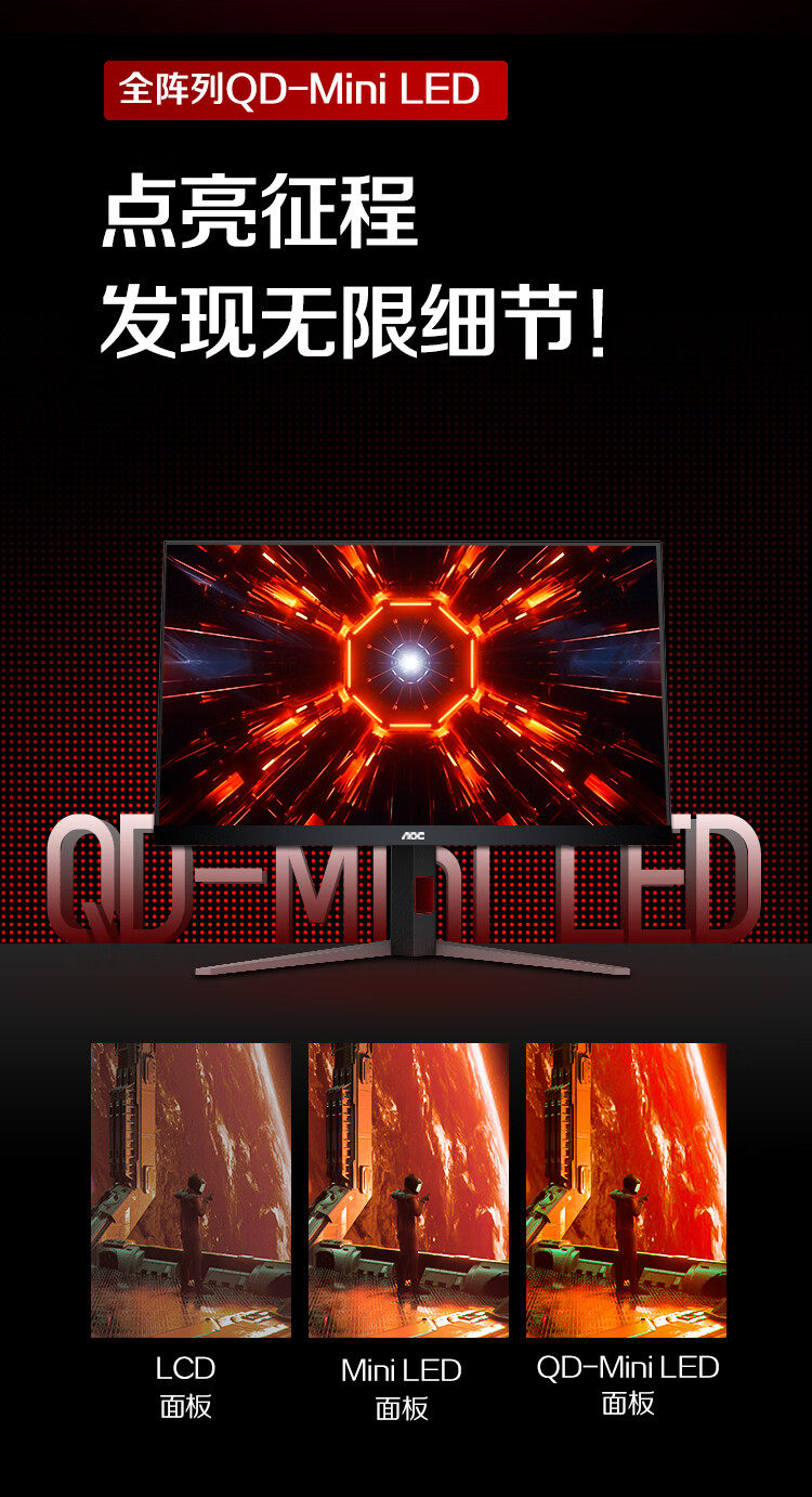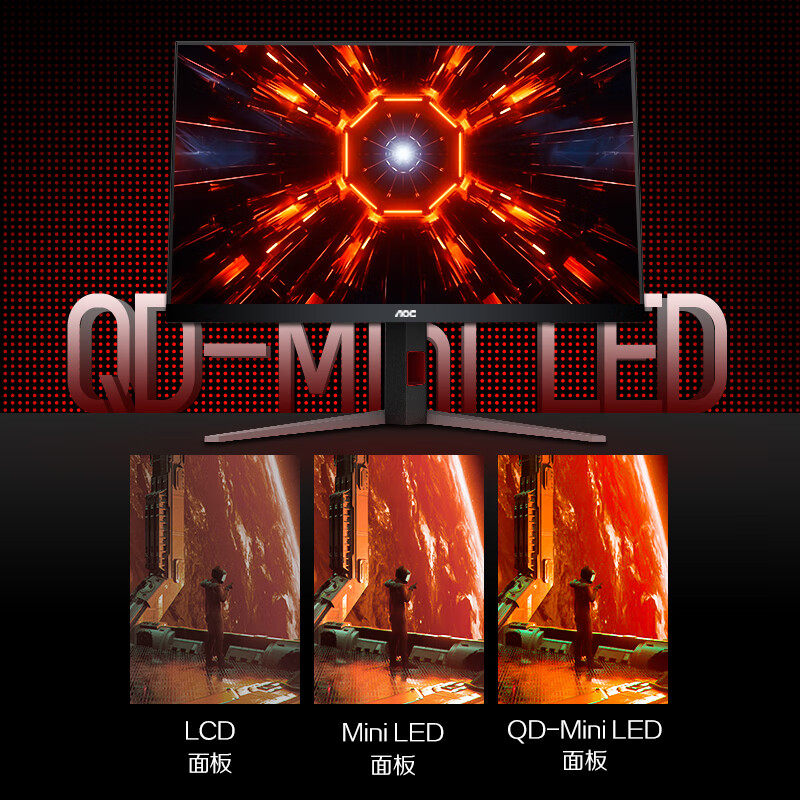 AOC 27-дюймовый игровой монитор 2K QD-MiniLED, 240 Гц, высокая частота обновления, HDR1000, компьютерный экран, подъемная настенная панель Fast VA
