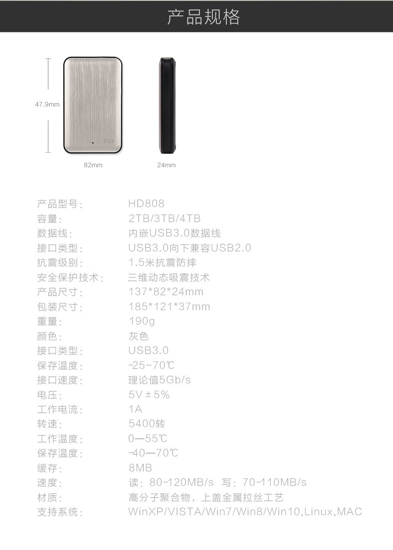 Patriot Mobile Hard Disk 2T High -Speed USB3.0 Металлический сейсмический анти -аффинд 2,5 -INCH HD808 поставляется с линией без проигрыша