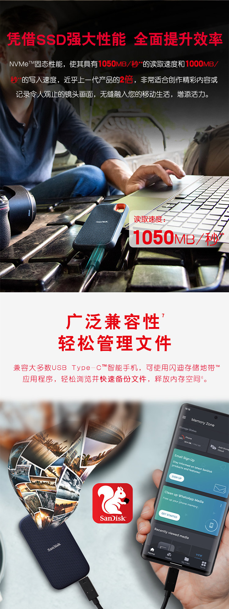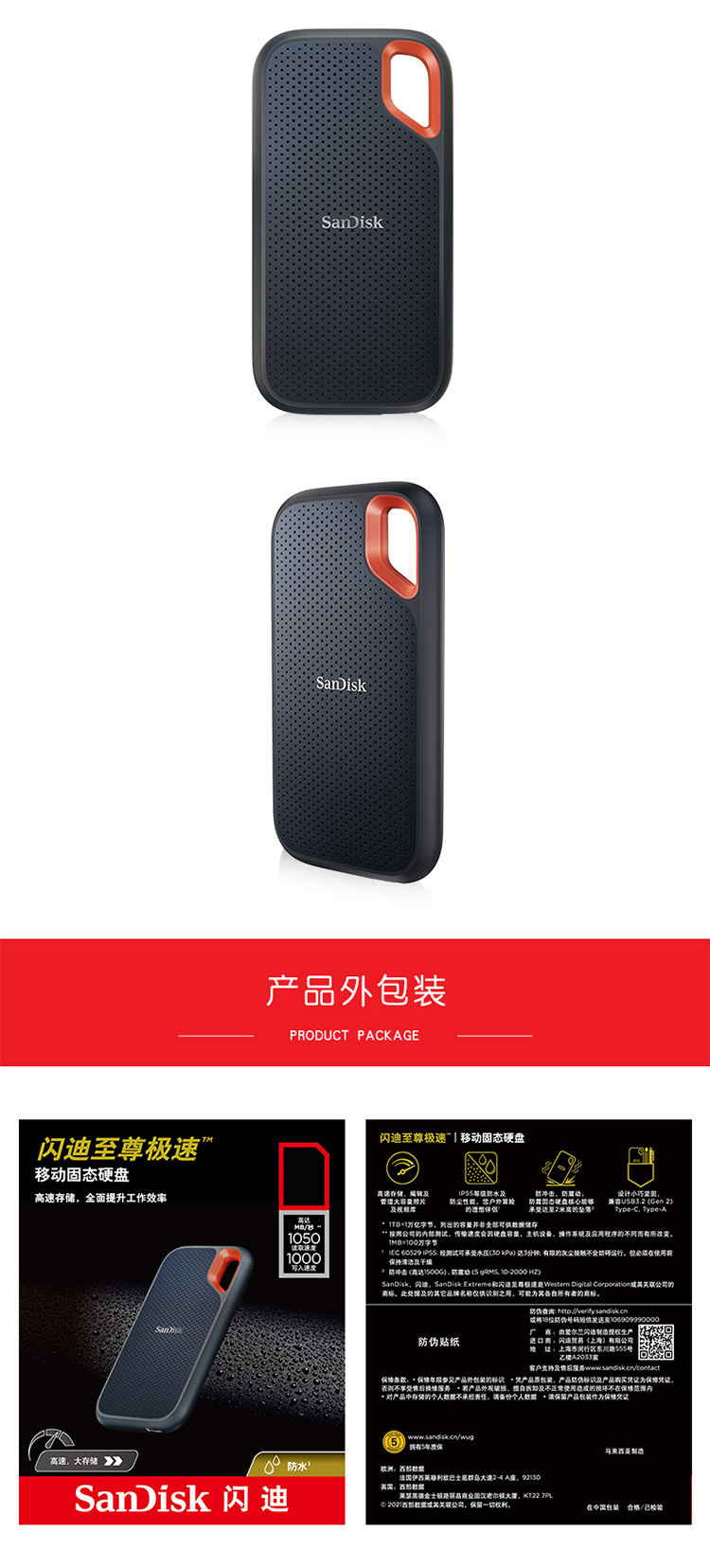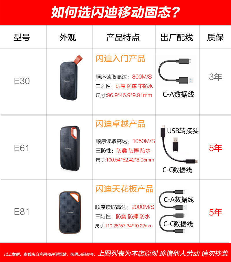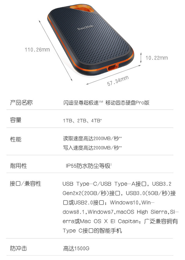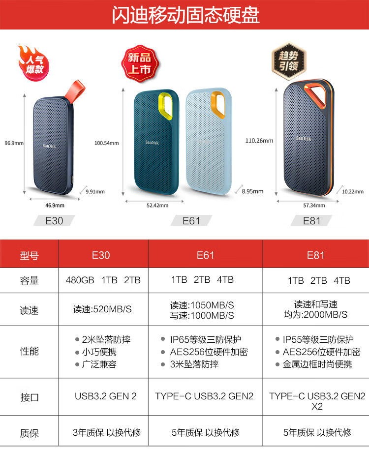 Sandisk Mobile Solid Drive Typec Внешнее SSD Storage Typec Высокоскоростной E61 водонепроницаемый 1t 2t 4t