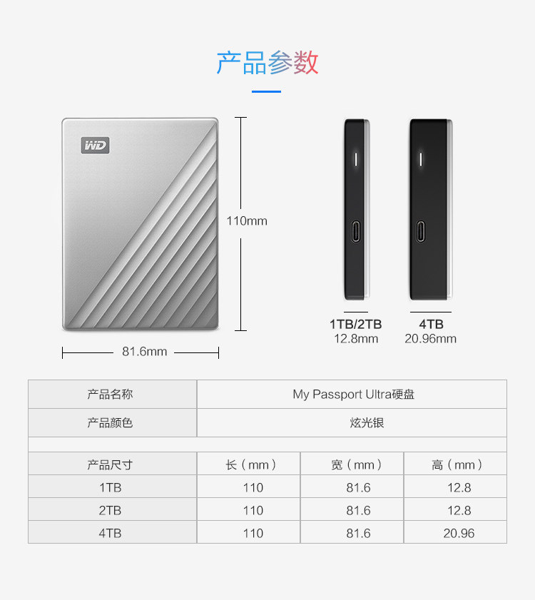 WD 儴鏁 Блок 嵁 My Passport Ultra 姩 洏 洏 2TB 1TB 1T Type-C P10 5TB