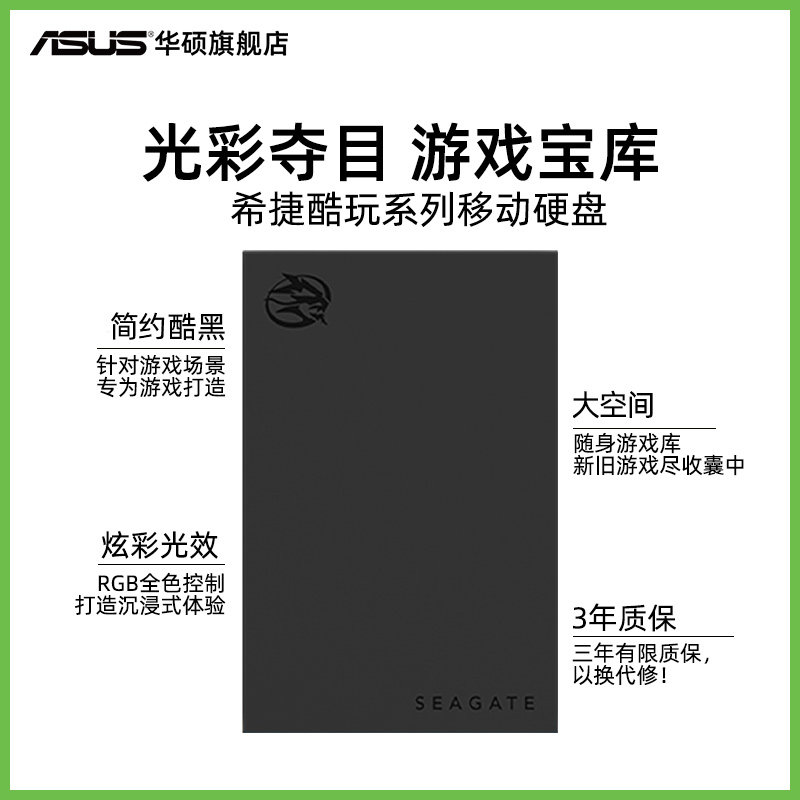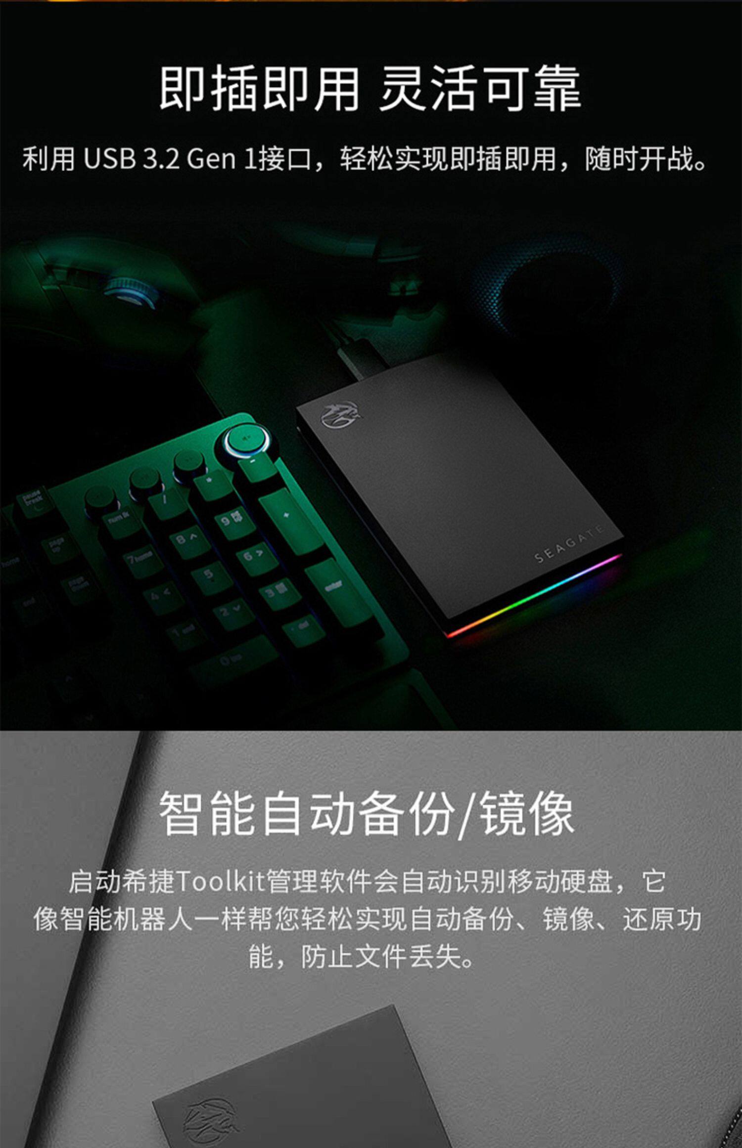 Seagate Cool Play 2TB Мобильный жесткий диск RGB Lighting Effectiancy
