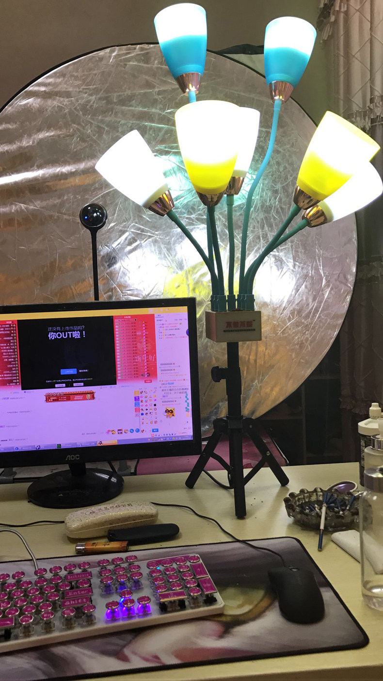 3, Введение в четырех света: четыре -один свет подходит для компьютерной прямой трансляции и мобильной прямой трансляции. Свет и камеры, и сэкономить время, чтобы найти настольную лампу! В то же время есть двойные кронштейны с двойными мобильными телефонами/микрофонные кронштейны ....