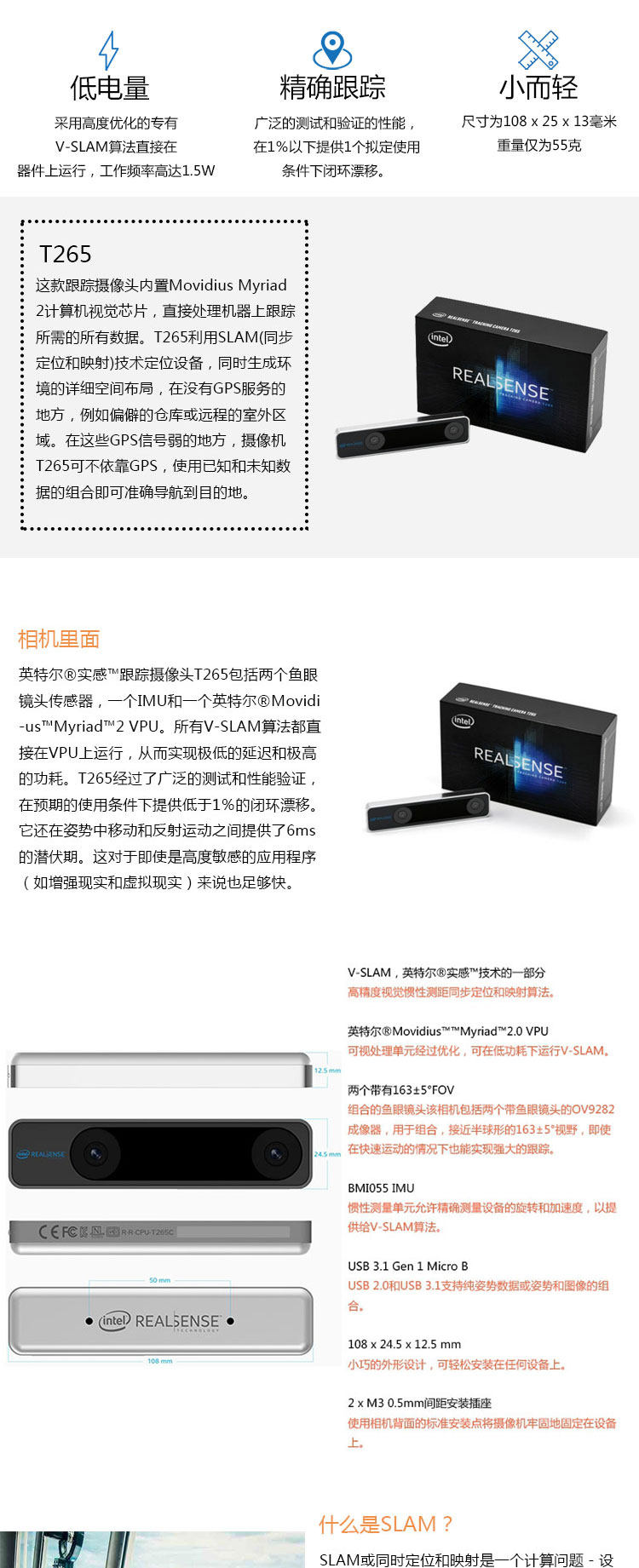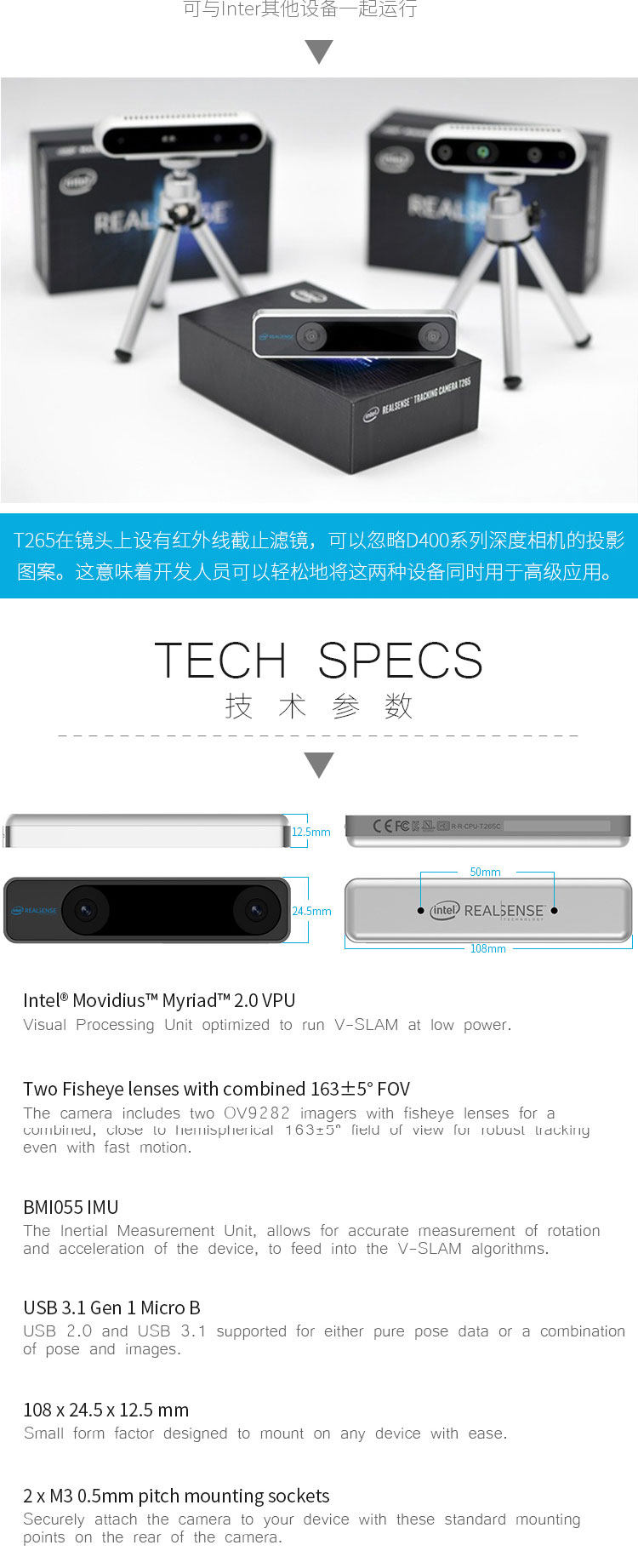 Intel Realsense Cameraing Camera T265 Реальная камера отслеживания D430 T261