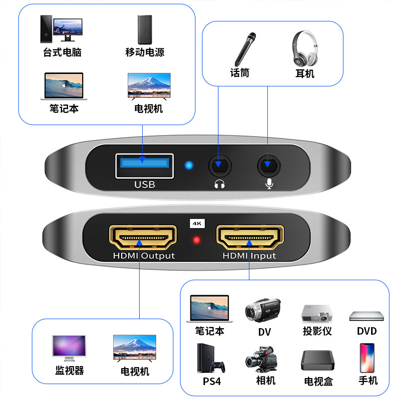 4K Video Collection Card HD Live Obsent Conference Conference Nailing Douyin Camera PC PS4 USB3.0