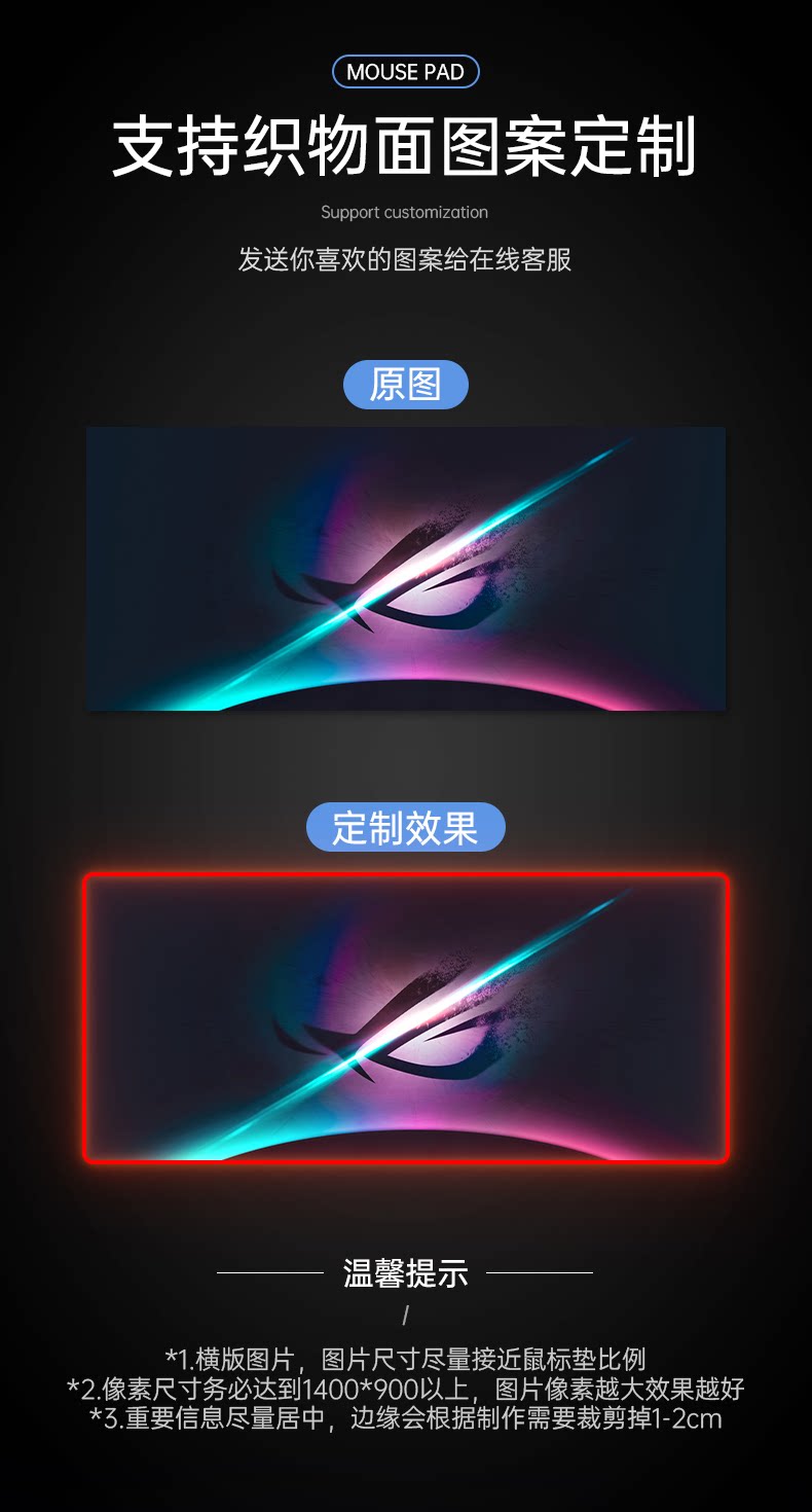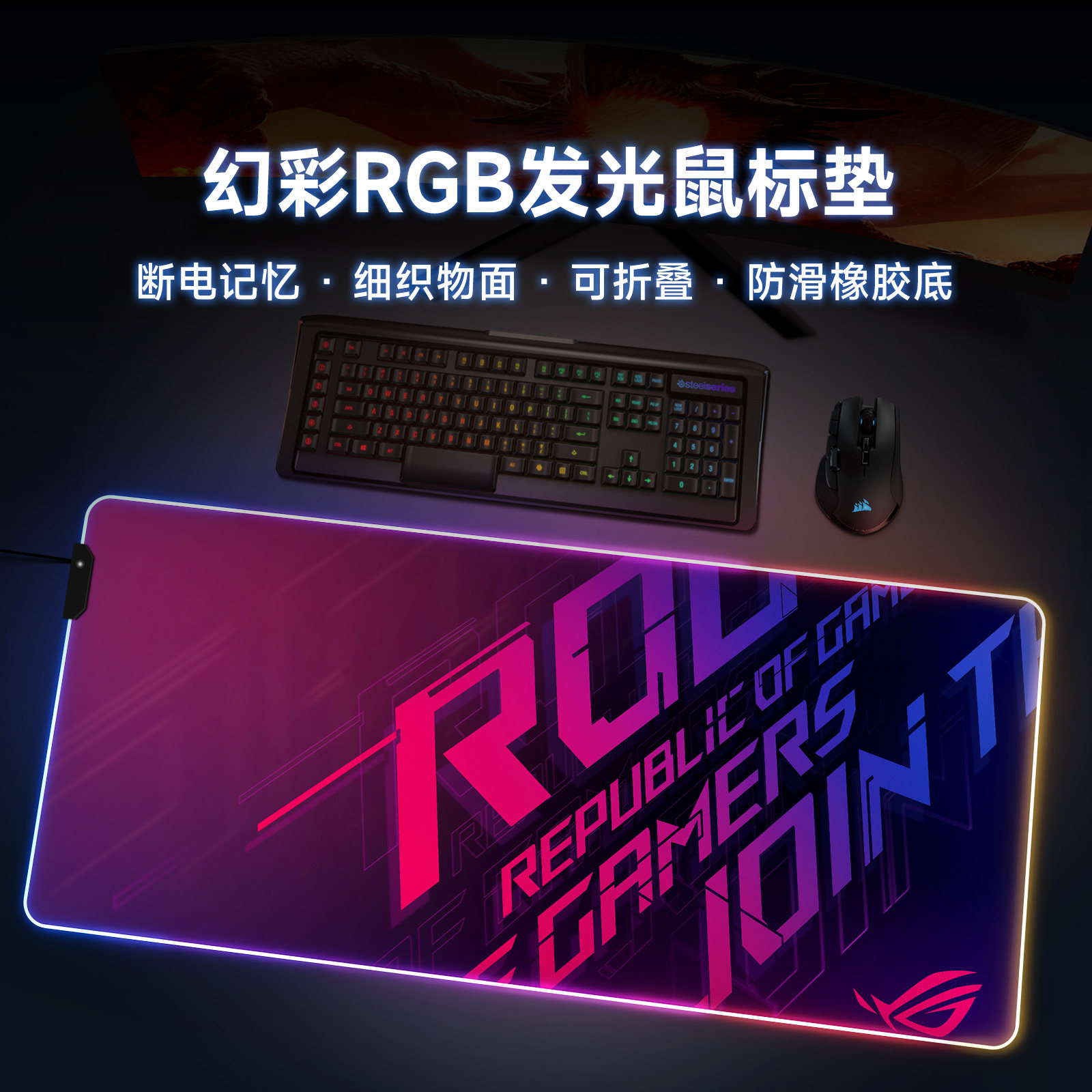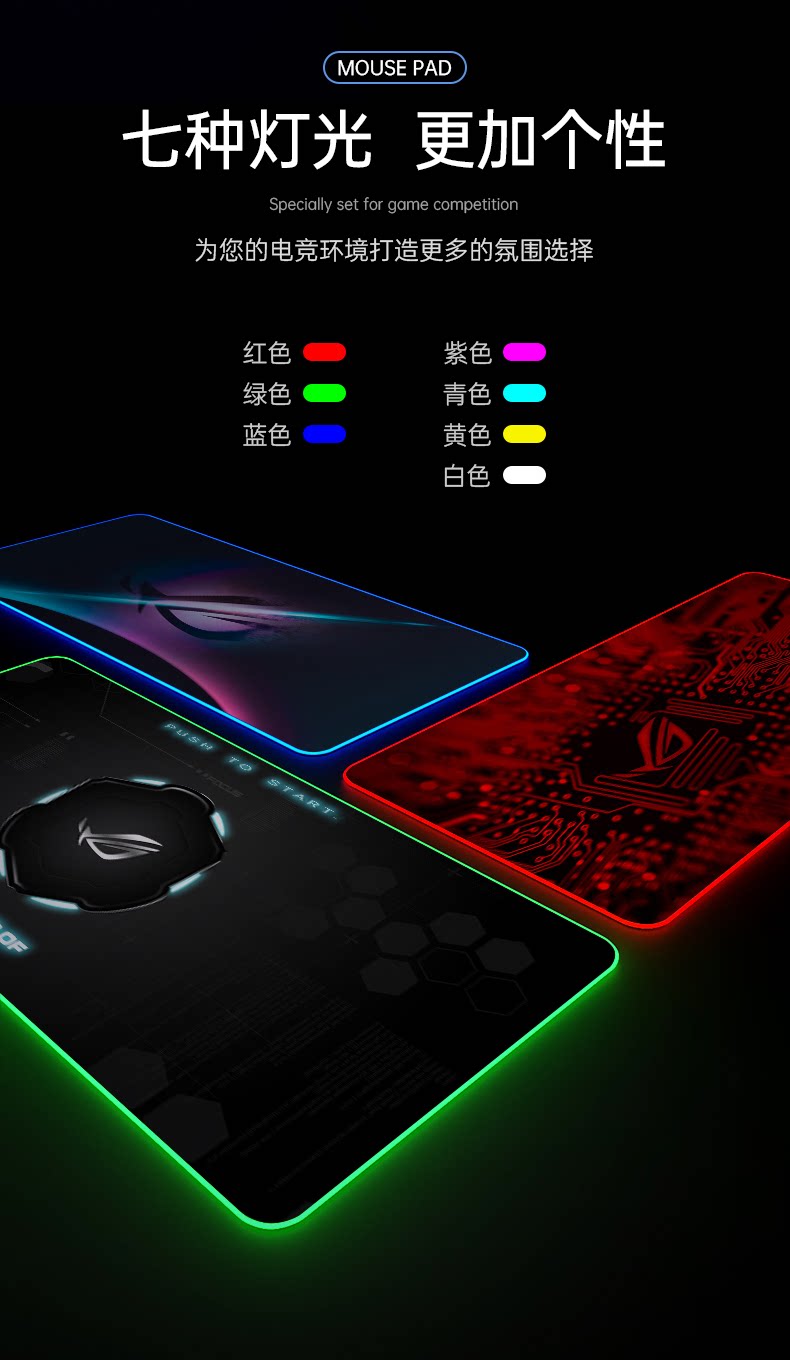 ROG, светящаяся большая мышка, игровой настольный ноутбук, светильник, олимпийский настольный коврик с подсветкой с зарядкой, напульсники, увеличенная толщина
