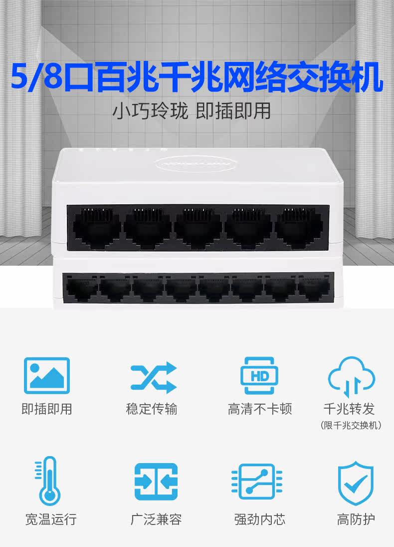 Hainan Weisan 100M Switch Monitor 5 8 -портовое переключение домашнего сети сетевых сетевых сетевых сетевых сетевых сети