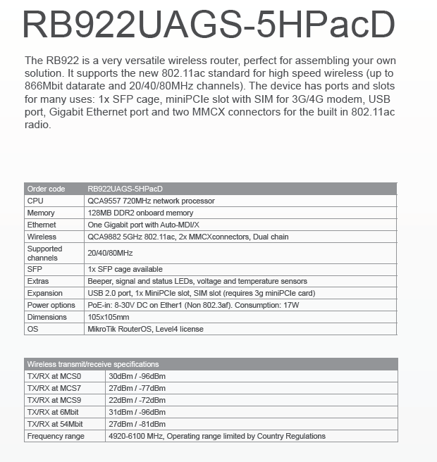 Mikrotik RB922UAGS-5HPACD 802.11AC ROS 澶 U 姛鐜 镞犵 缃戞 ˉ ˉ ˉ