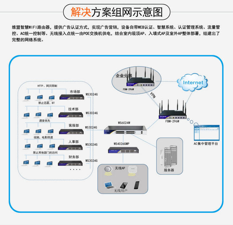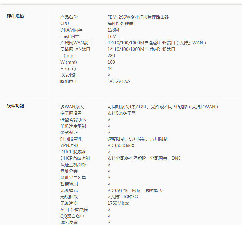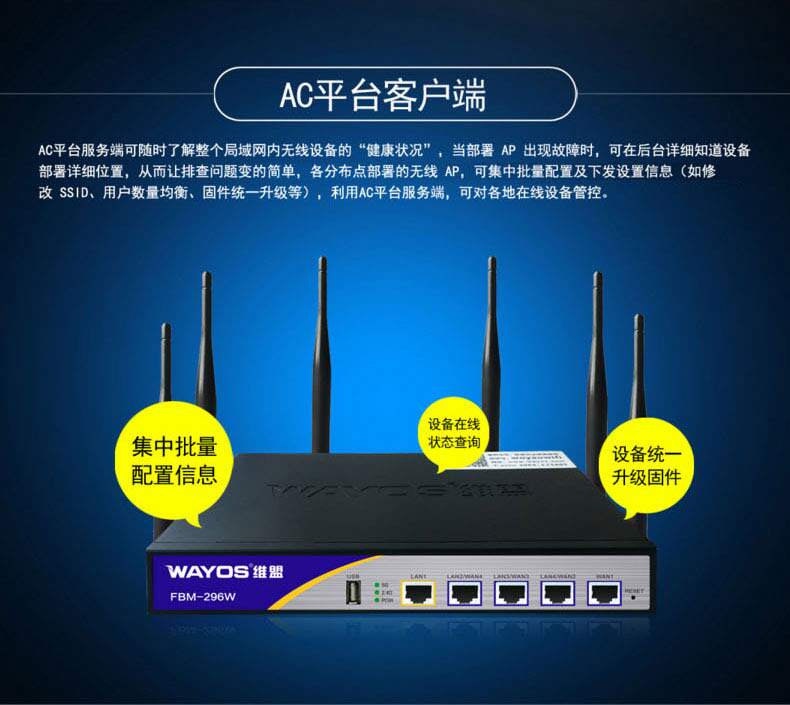 Baofengfeng Wayos Victorian FBM296W Коммерческий Wi -Fi Gigabit Corporation Management Dual -Cretency Wireless Router