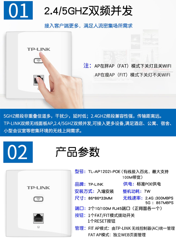 TP-LINK 86 AP Dual -Frequency 5G Беспроводная панель покрытия Wi -Fi вход POE Router Set 1200M