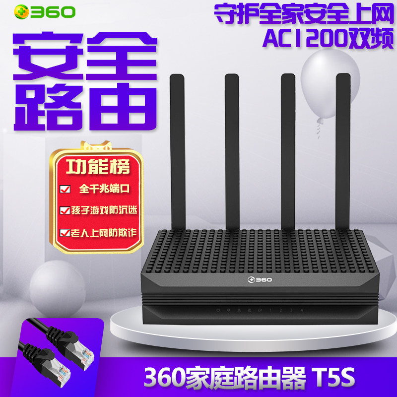 360 Беспроводной маршрутизатор T5S Полный гигабитный порт 1200 м Home High -Speed Smart Dual -Fretence 5GWIFI RELAY Семейный брандмауэр общежития телекомпонента