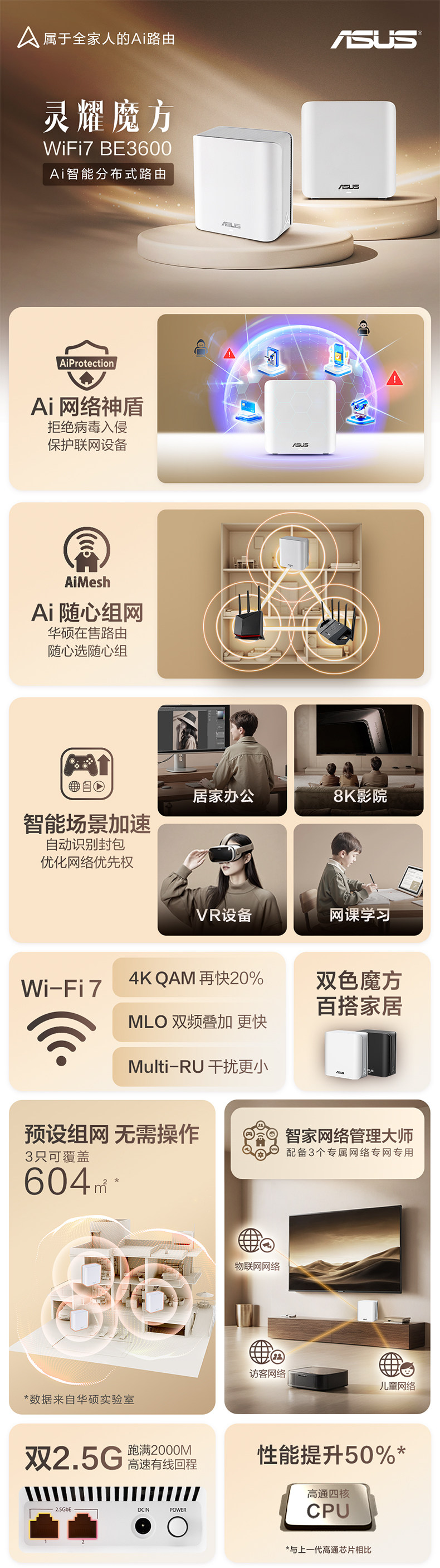 ASUS Lingyao Rubik's Cube WiFi7 распределенный материнский маршрутизатор домашняя беспроводная линия гигабитный Wi-Fi для всего дома набор игровой киберспортивный настенный маршрутизатор King Ai Xpress групповая маршрутизация be3600